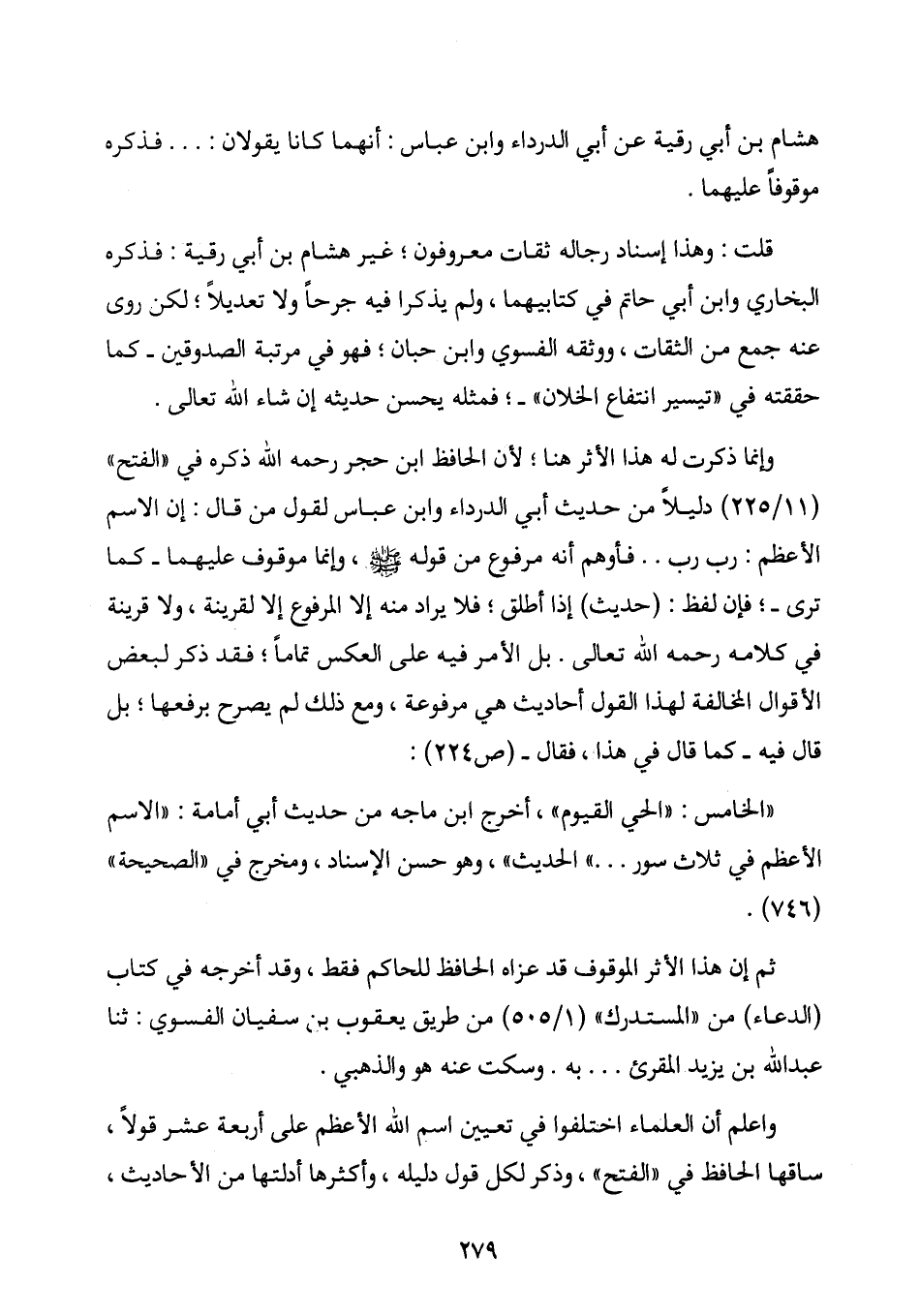 (11/225) دليلاً من حديث أبي الدرداء وابن عباس لقول من قال: إن الاسم