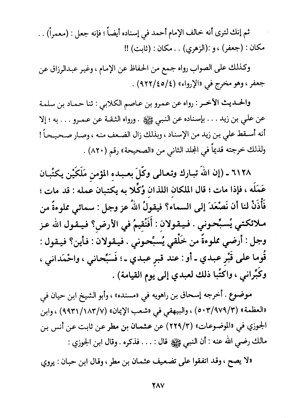 6128 - (نَّ اللَّهَ تبارك وتعالى وَكَّلَ بِعَبْدِهِ الْمُؤْمِنِ مَلَكَيْنِ يَكْتُبَانِ