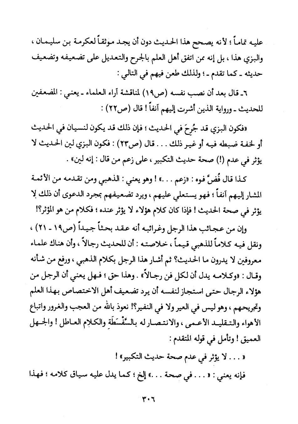 6 - قال بعد أن نصب نفسه (ص 19) لمناقشة آراء العلماء - يعني: المضعفين