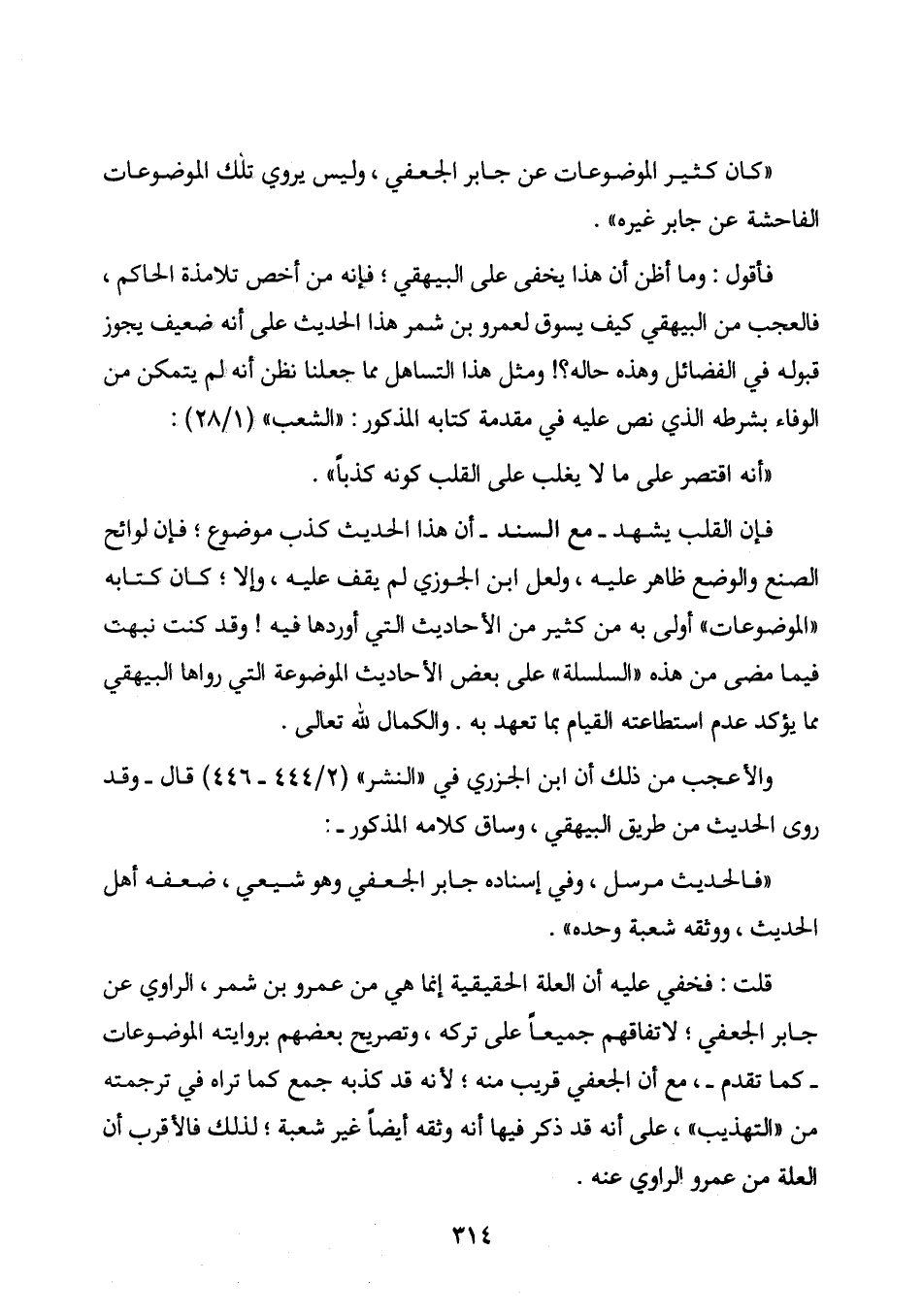 فالعجب من البيهقي كيف يسوق لعمرو بن شمر هذا الحديث على أنه ضعيف يجوز