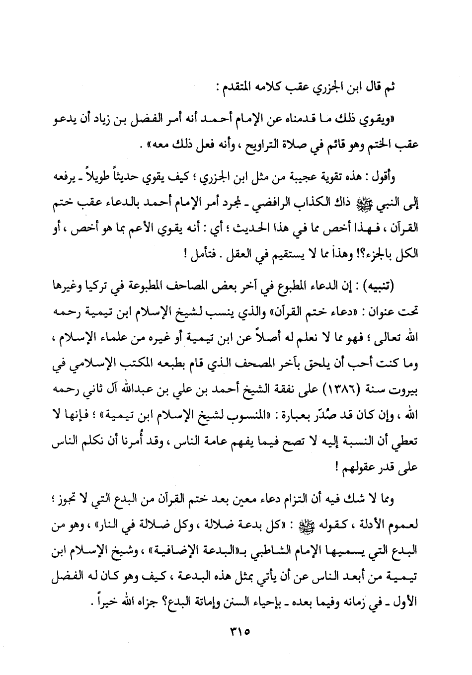 "ويقوي ذلك ما قدمناه عن الإمام أحمد أنه أمر الفضل بن زياد أن يدعو