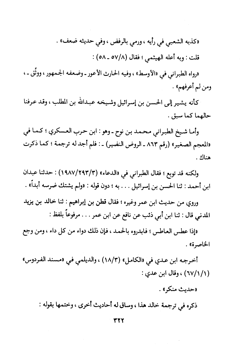 "كذبه الشعبي في رأيه، ورمي بالرفض، وفي حديثه ضعف ".