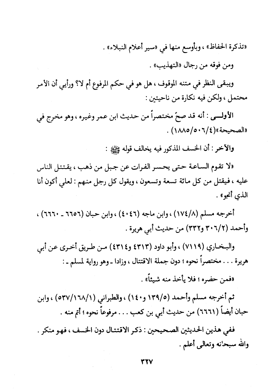 ففي هذين الحديثين الصحيحين: ذكر الاقتتال دون الخسف، فهو منكر.