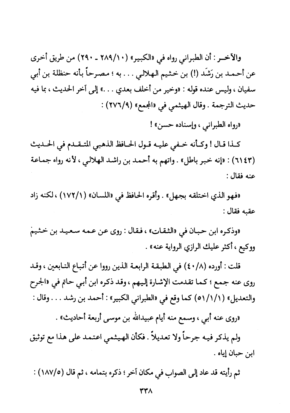 "وذكره ابن حبان في "الثقات"، فقال: روى عن عمه سعيد بن خثيم