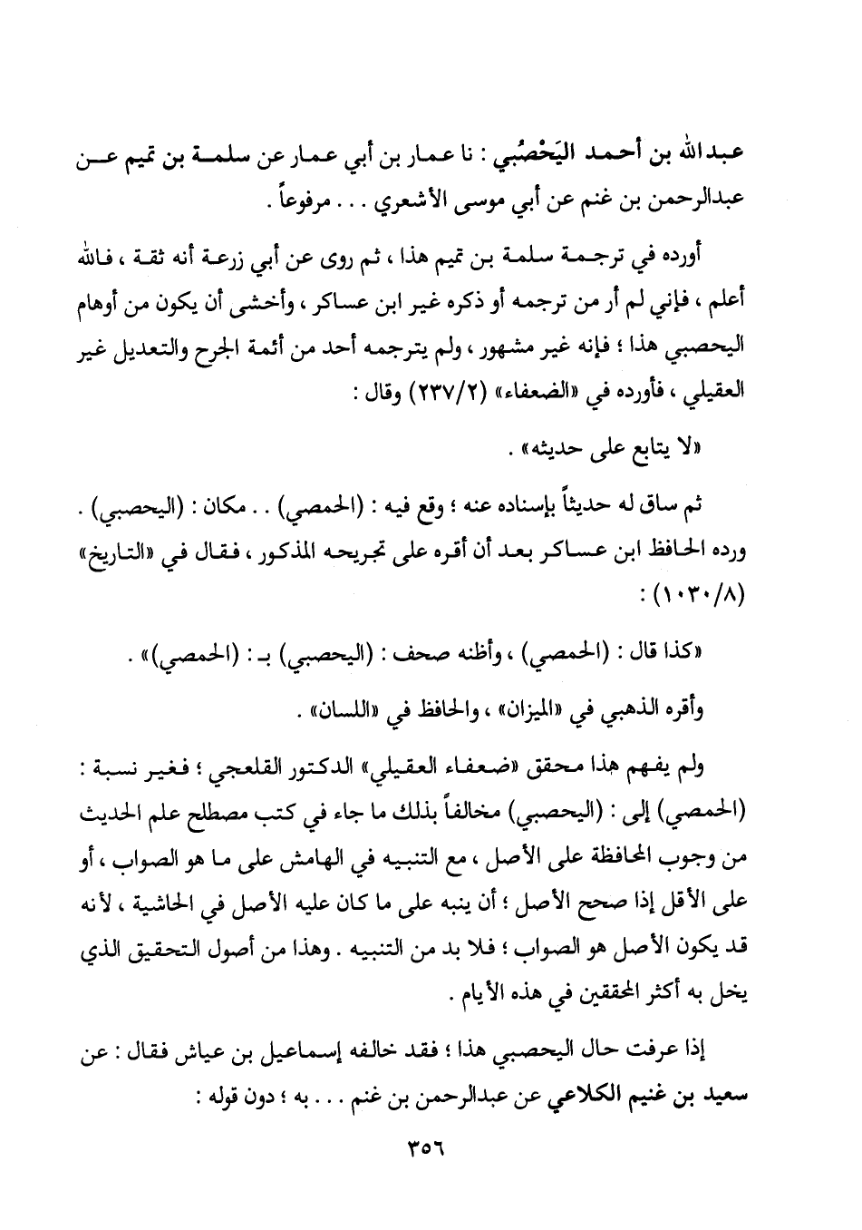 (الحمصي) إلى؛ (اليحصبي) مخالفاً بذلك ما جاء في كتب مصطلح علم الحديث