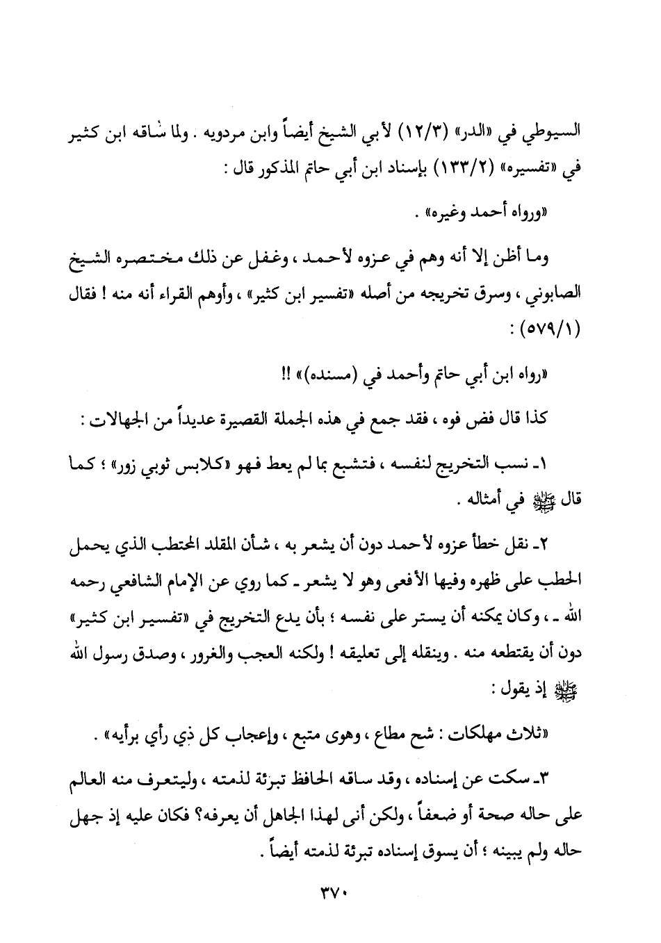 الصابوني، وسرق تخريجه من أصله "تفسير ابن كثير"، وأوهم القراء أنه منه! فقال