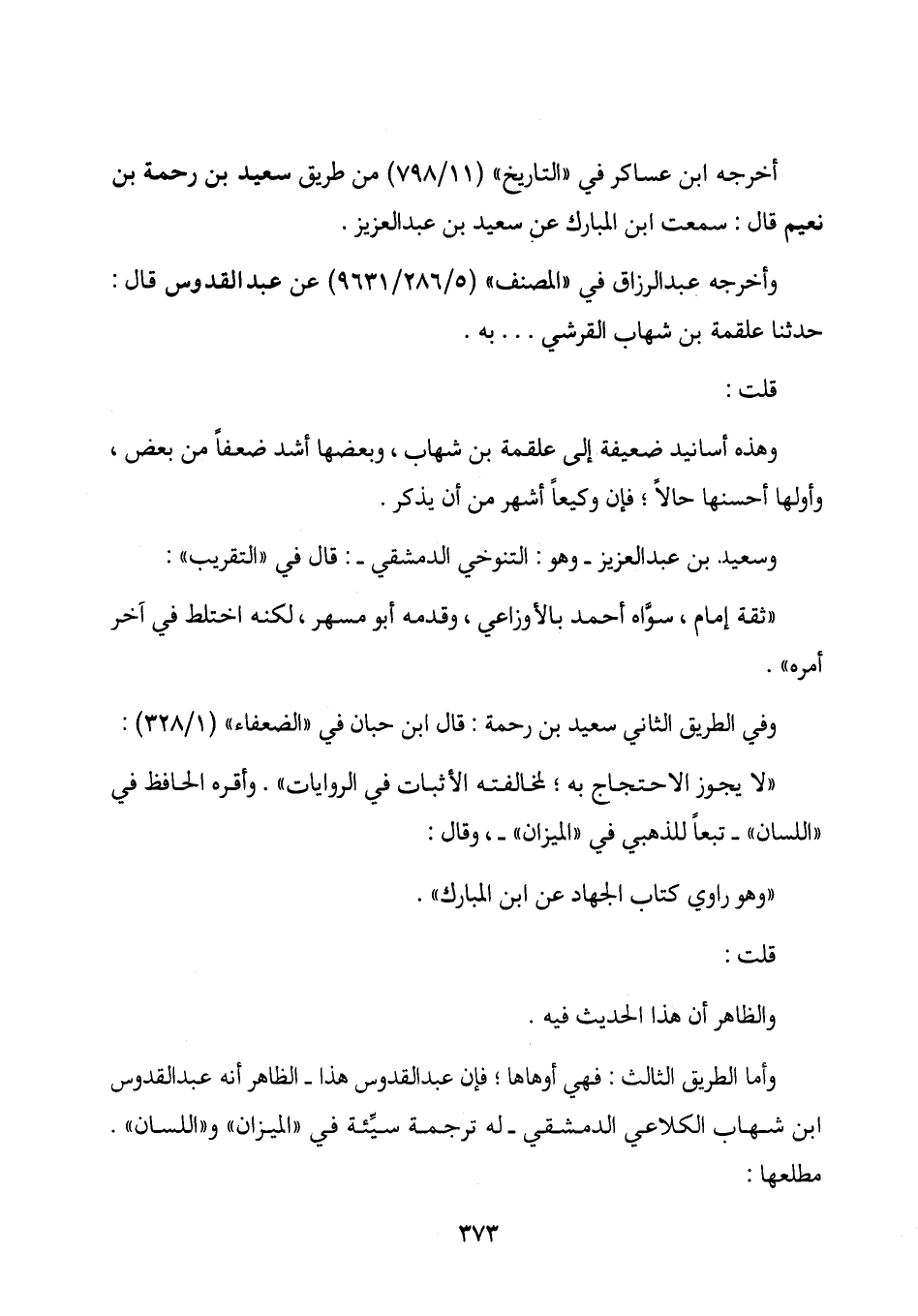 نعيم قال: سمعت ابن المبارك عن سعيد بن عبد العزيز.