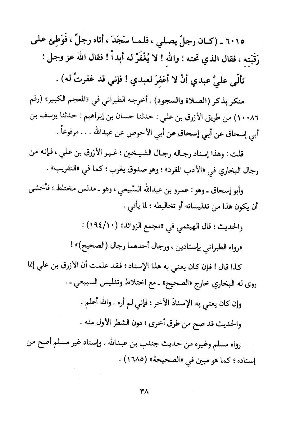 "رواه الطبراني بإسنادين، ورجال أحدهما رجال (الصحيح) "!