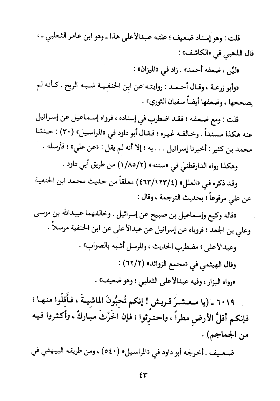 وعلي بن الجعد؛ فروياه عن إسرائيل عن عبد الأعلى عن ابن الحنفية مرسلاً.