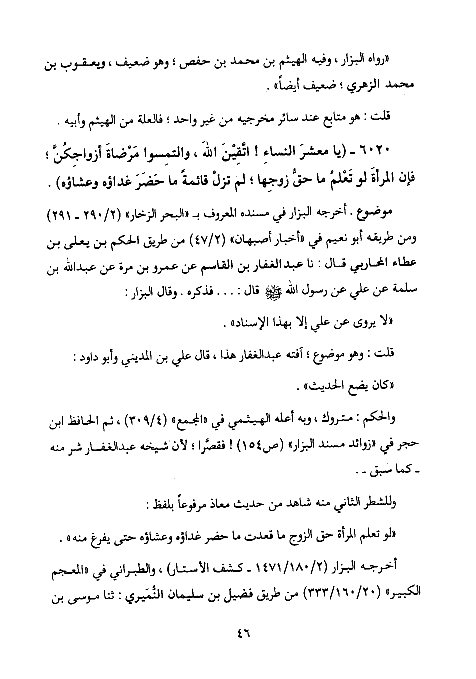حجر في "زوائد مسند البزار" (ص 154) ! فقصَّرا؛ لأن شيخه عبد الغفار شر منه