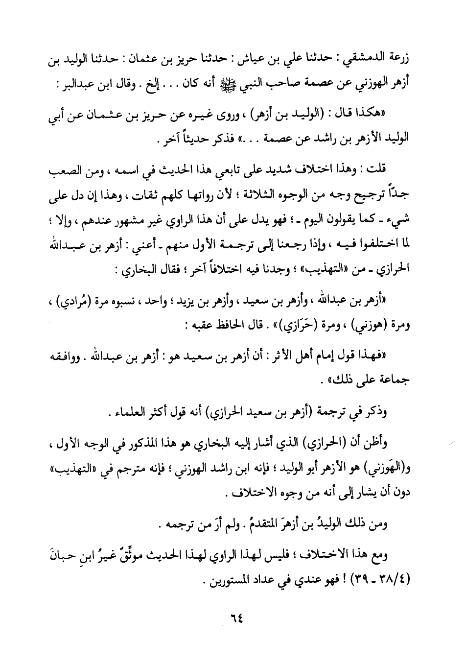 "فهذا قول إمام أهل الأثر: أن أزهر بن سعيد هو: أزهر بن عبد الله. ووافقه
