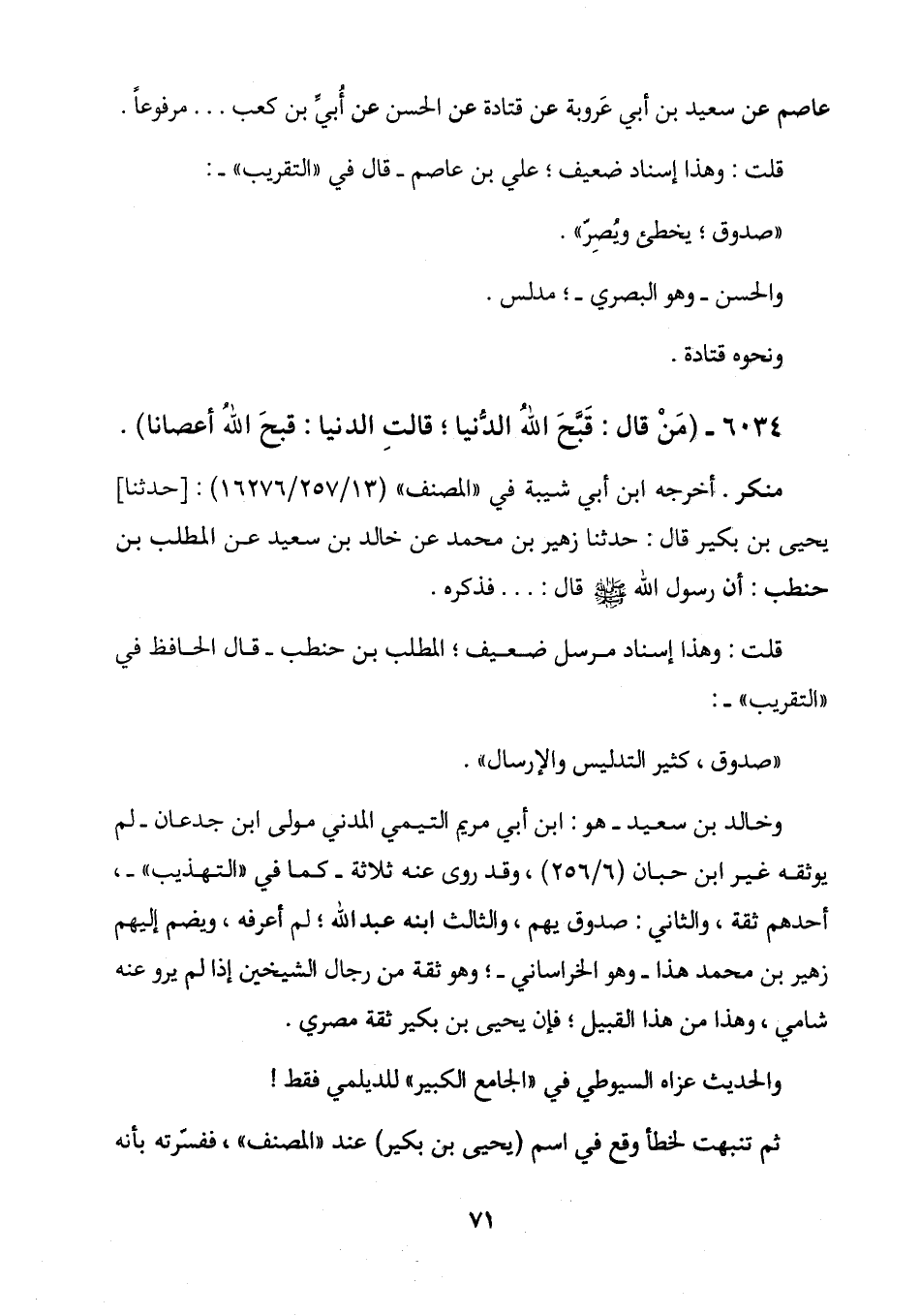 6034 - (مَنْ قال: قبح اللهُ الدُّنيا؛ قالتِ الدنيا: قبحَ اللهُ أعصانا) .