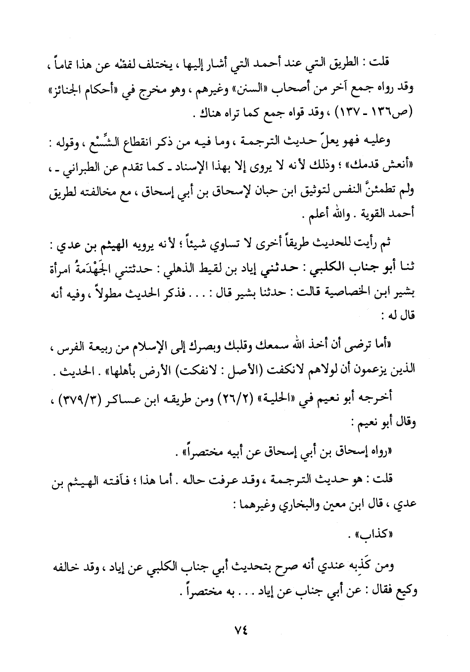 ثم رأيت للحديث طريقاً أخرى لا تساوي شيئاً؛ لأنه يرويه الهيثم بن عدي: