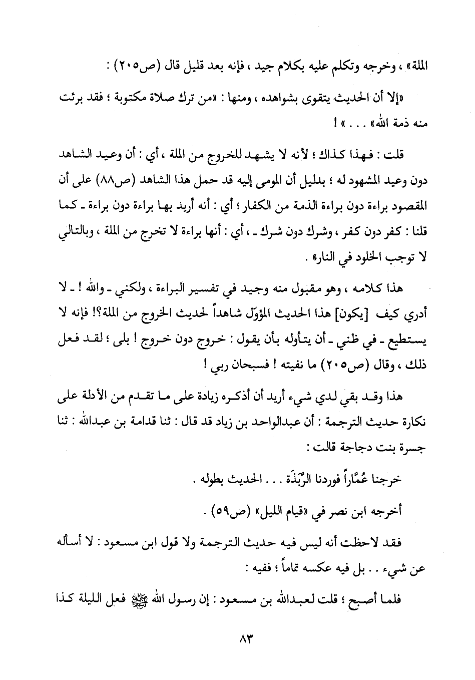 الملة"، وخرجه وتكلم عليه بكلام جيد، فإنه بعد قليل قال (ص 205) :
