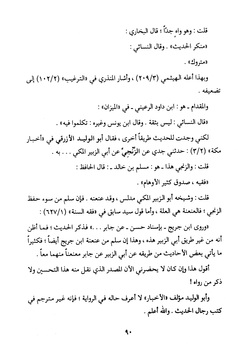 الزنجي؛ فالعنعنة هي العلة، وأما قول سيد سابق في "فقه السنة" (1/627) :