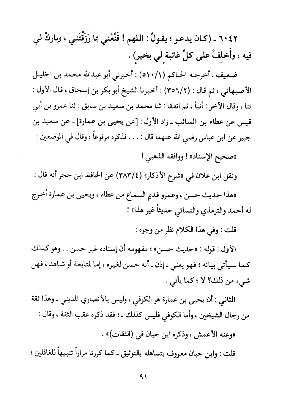 الاني: أن يحيى بن عمارة هو الكوفي، وليس بالأنصاري المديني - وهذا ثقة