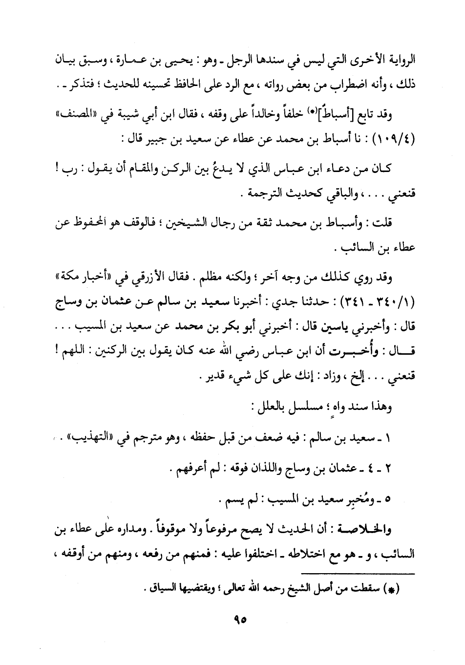 1 - سعيد بن سالم: فيه ضعف من قبل حفظه، وهو مترجم في "التهذيب ".