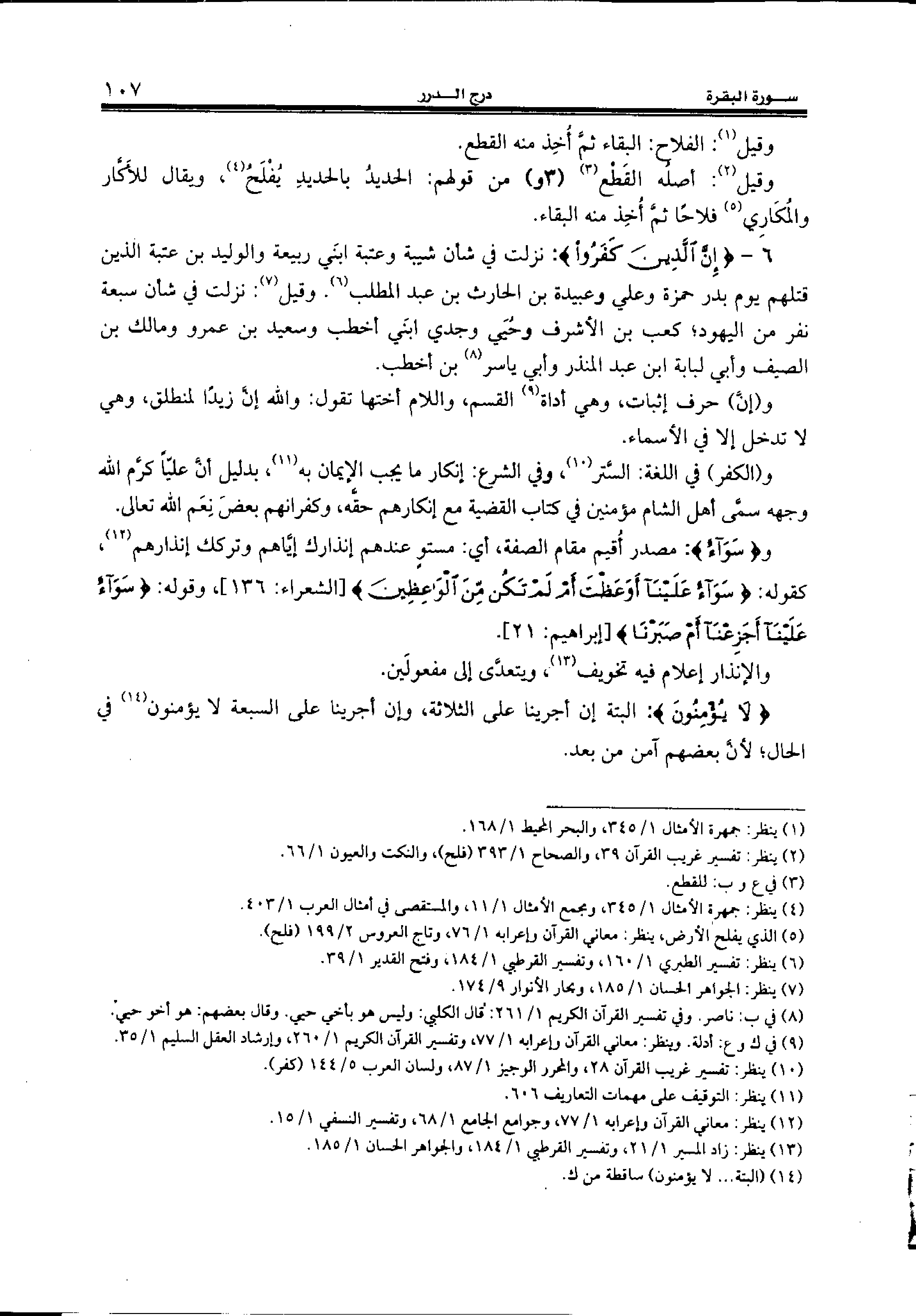 (¬6) ينظر: تفسير الطبري 1/ 160، وتفسير القرطبي 1/ 184، وفتح القدير 1/ 39.