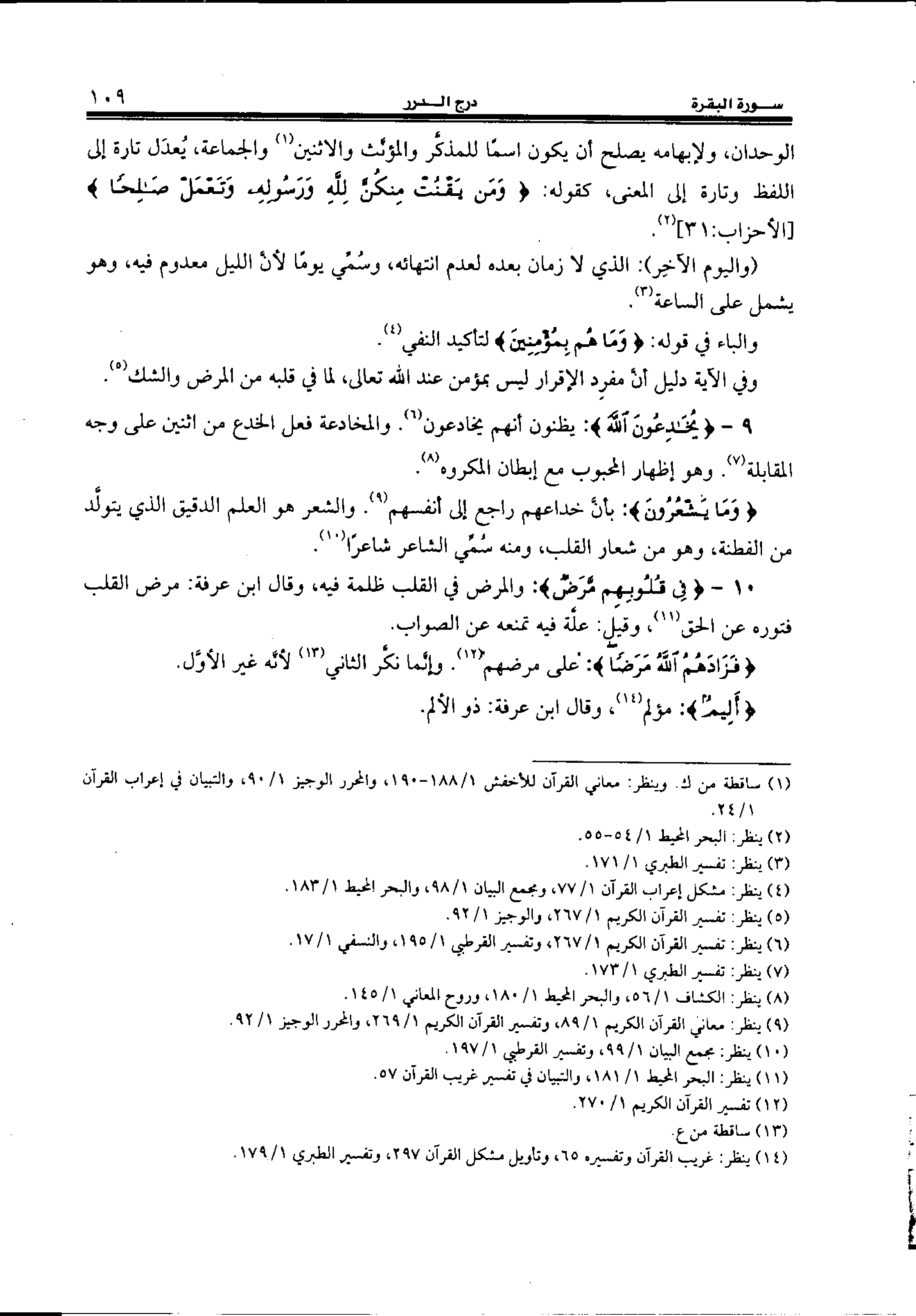 (¬9) ينظر: معاني القرآن الكريم 1/ 89، وتفسير القرآن الكريم 1/ 269، والمحرر الوجيز 1/ 92.