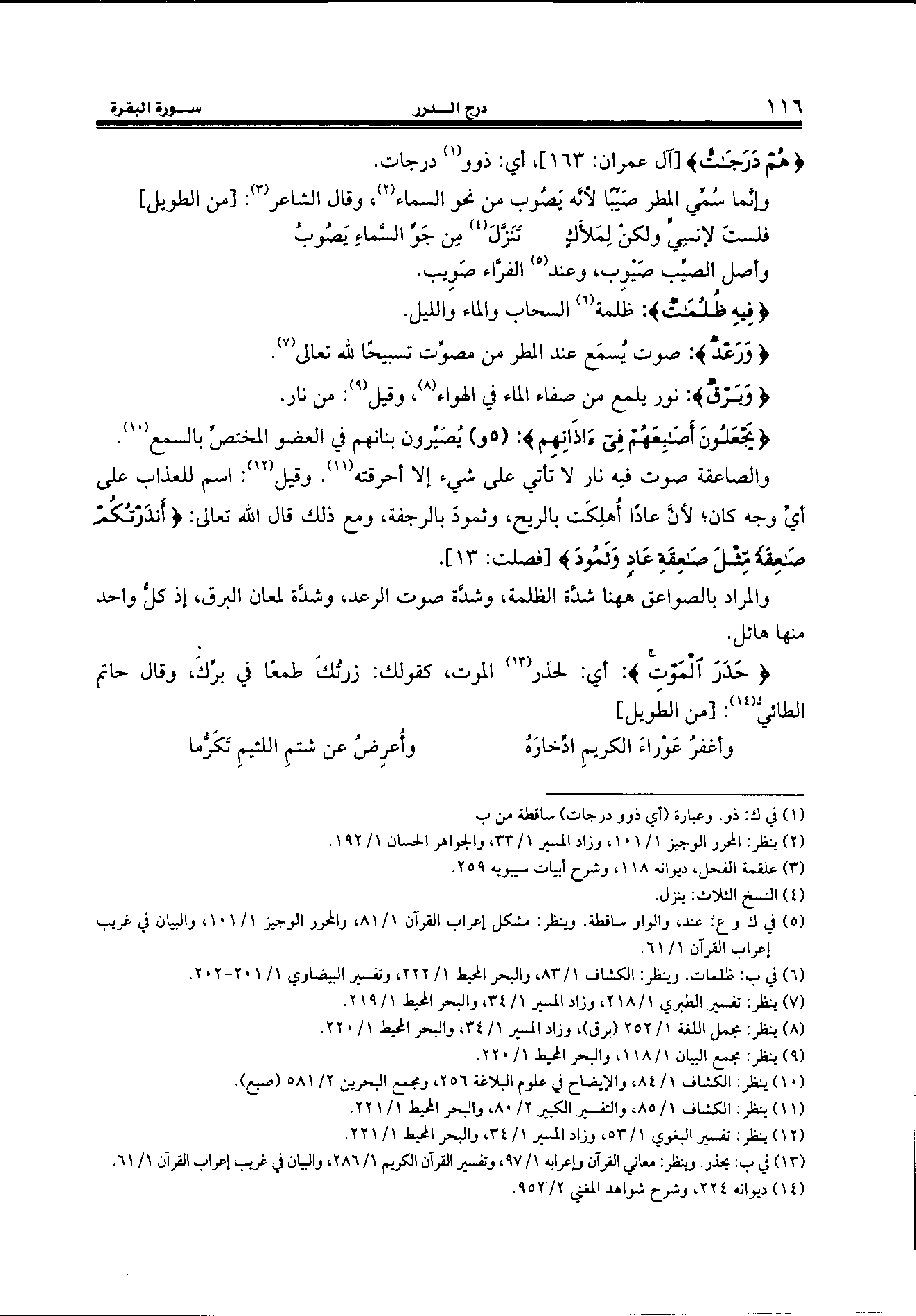 (¬14) ديوانه 224، وشرح شواهد المغني 2/ 952.