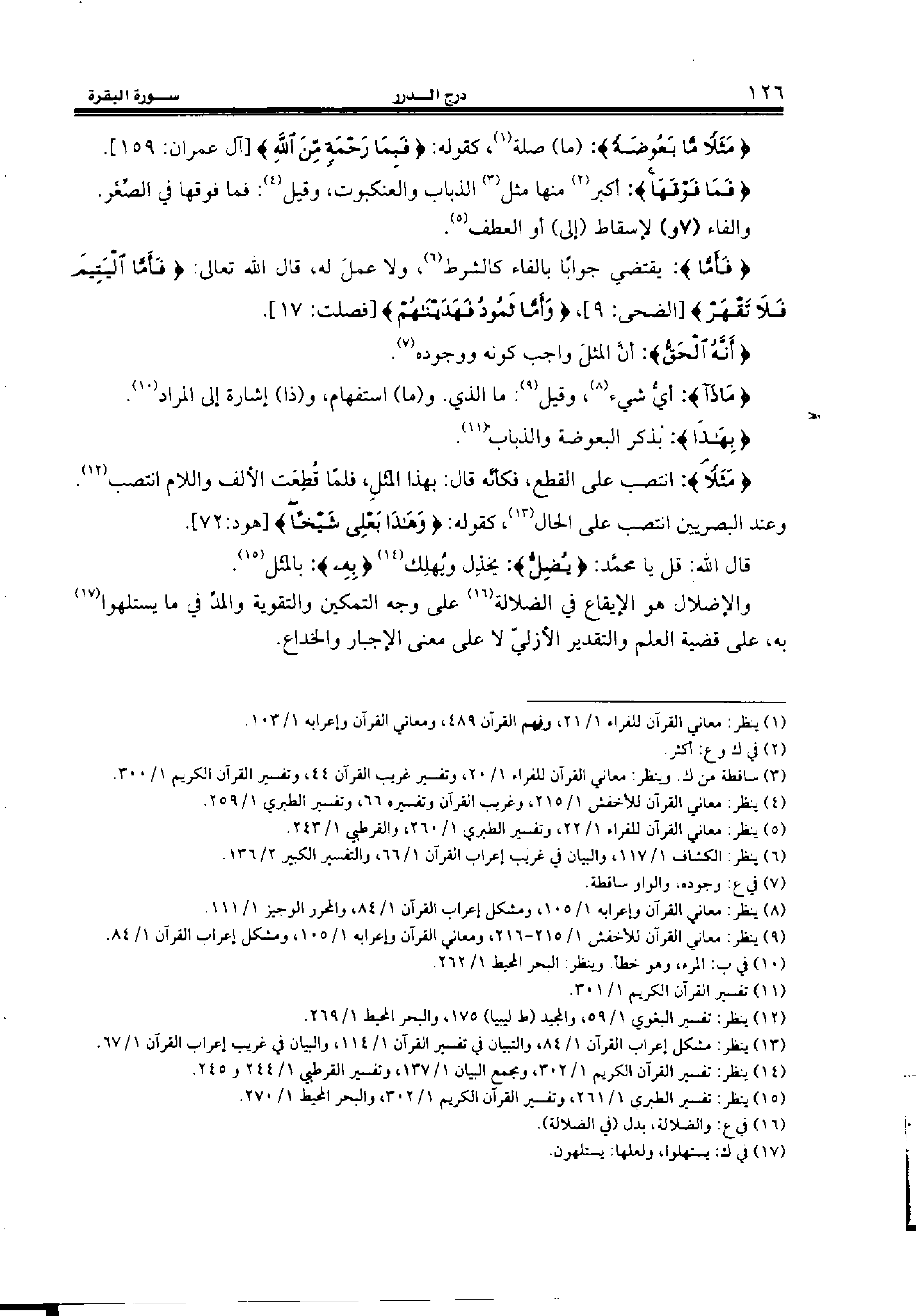 (¬6) ينظر: الكشاف 1/ 117، والبيان في غريب إعراب القرآن 1/ 66، والتفسير الكبير 2/ 136.