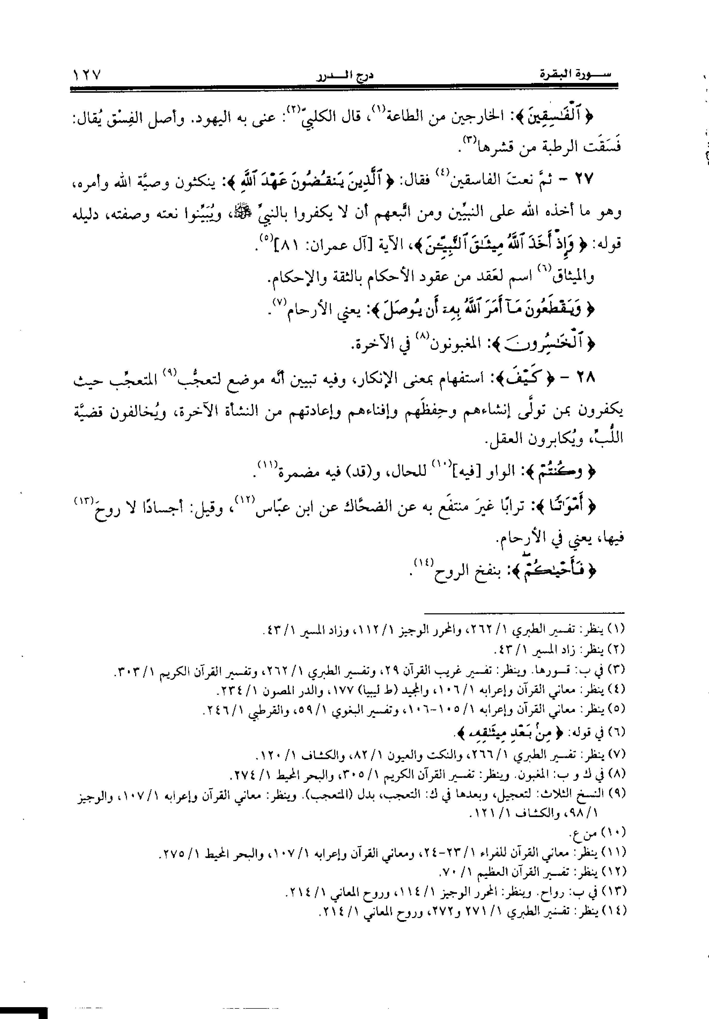 (¬14) ينظر: تفسير الطبري 1/ 271 و 272، وروح المعاني 1/ 214.