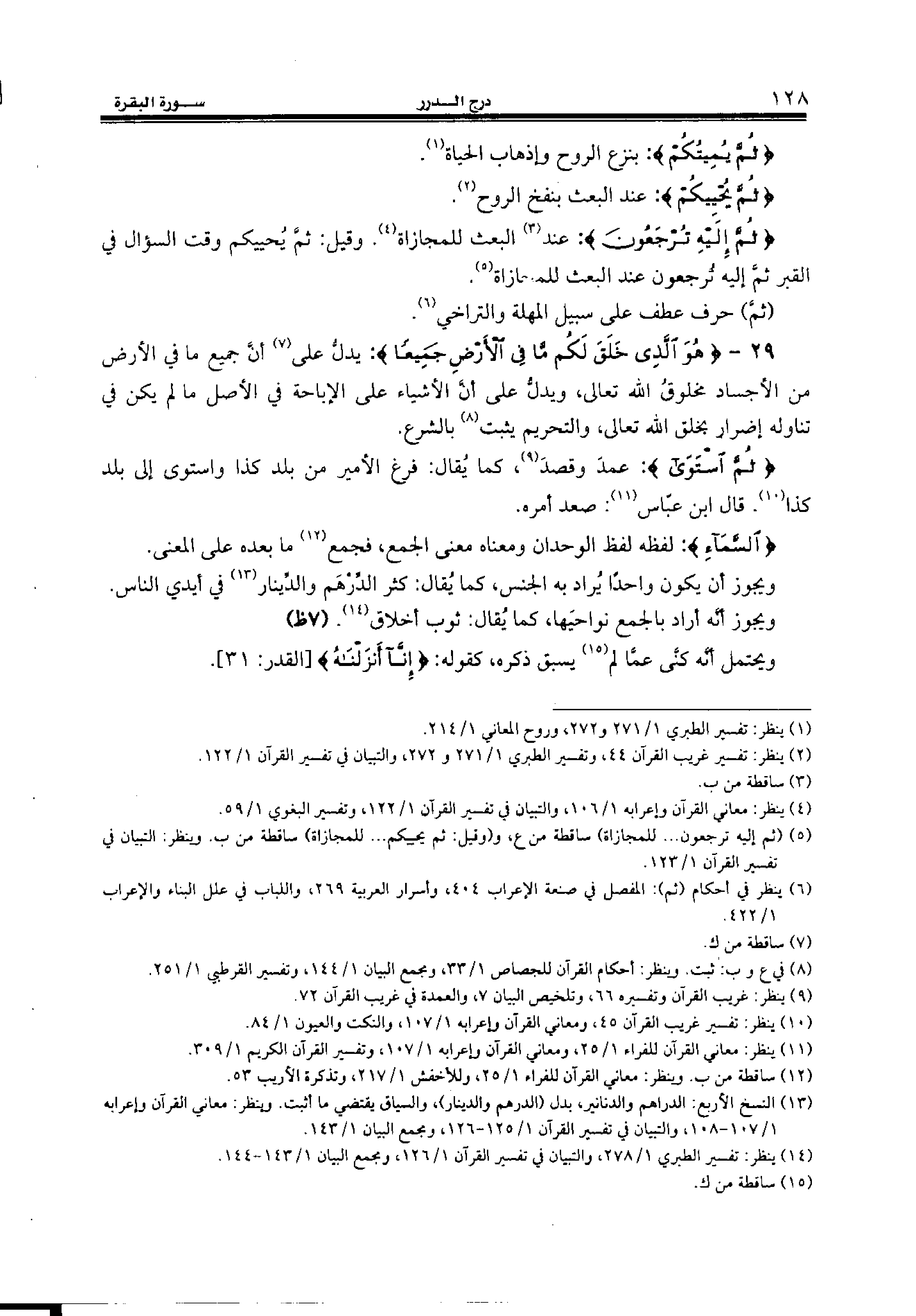 (¬1) ينظر: تفسير الطبري 1/ 271 و 272، وروح المعاني 1/ 214.