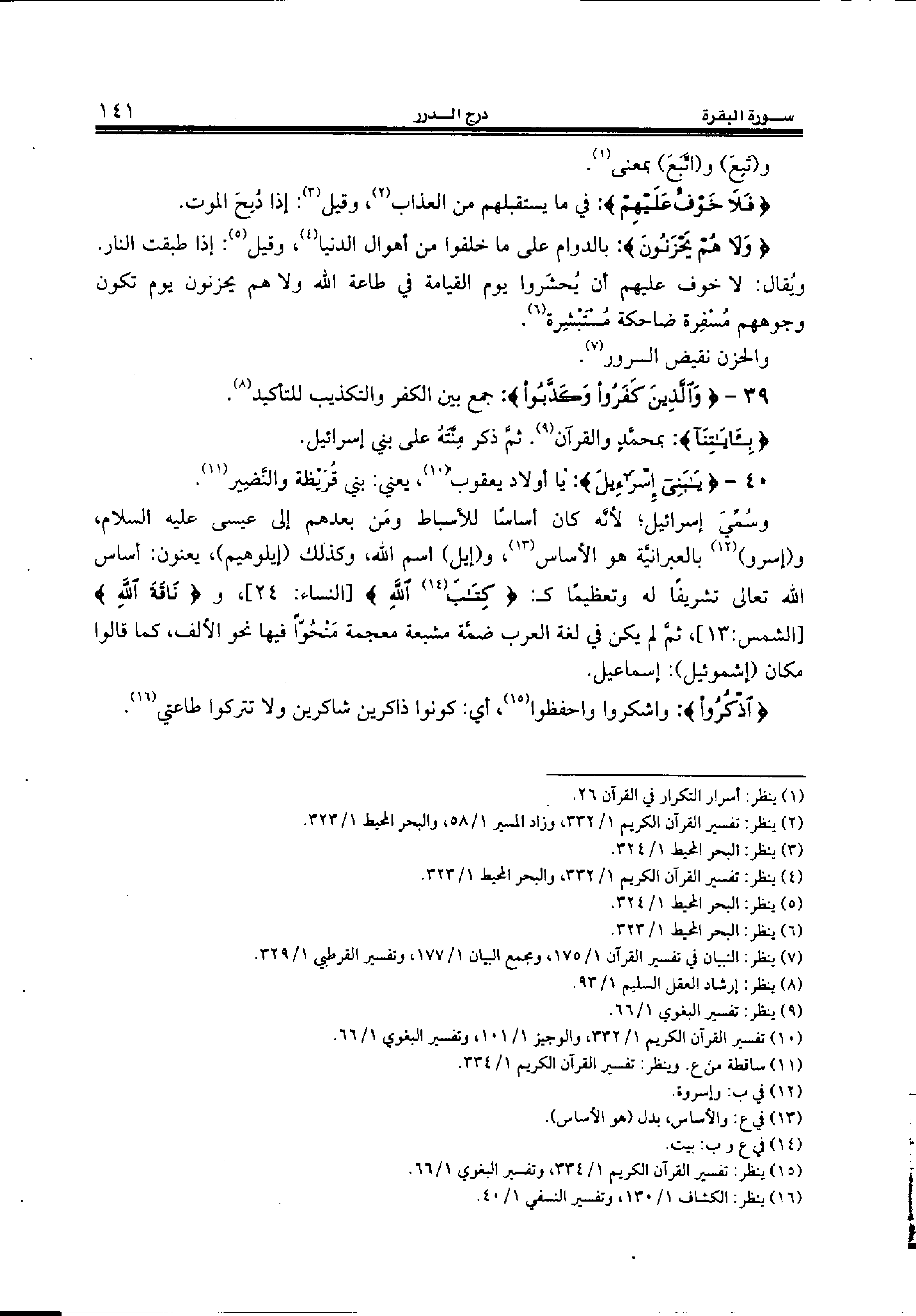 (¬16) ينظر: الكشاف 1/ 130، وتفسير النسفي 1/ 40.