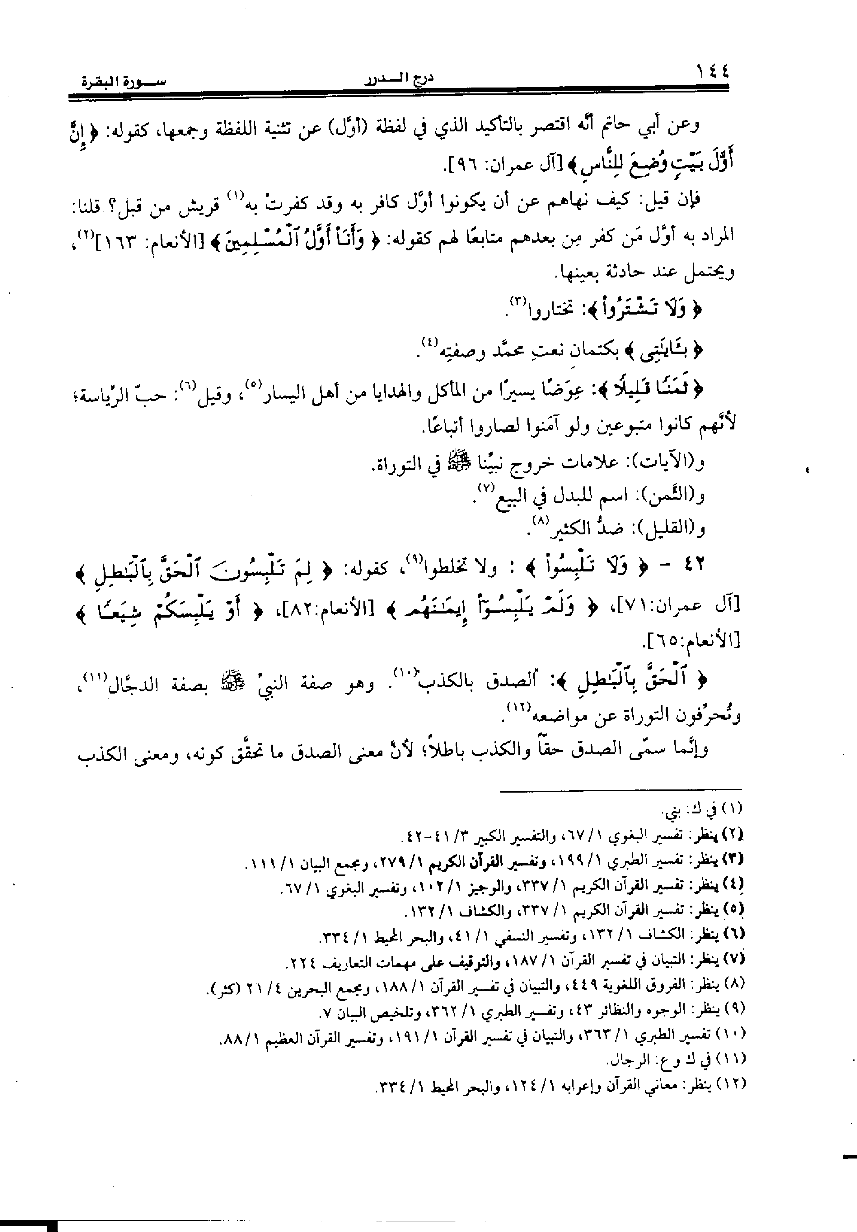(¬10) تفسير الطبري 1/ 363، والتبيان في تفسير القرآن 1/ 191، وتفسير القرآن العظيم 1/ 88.