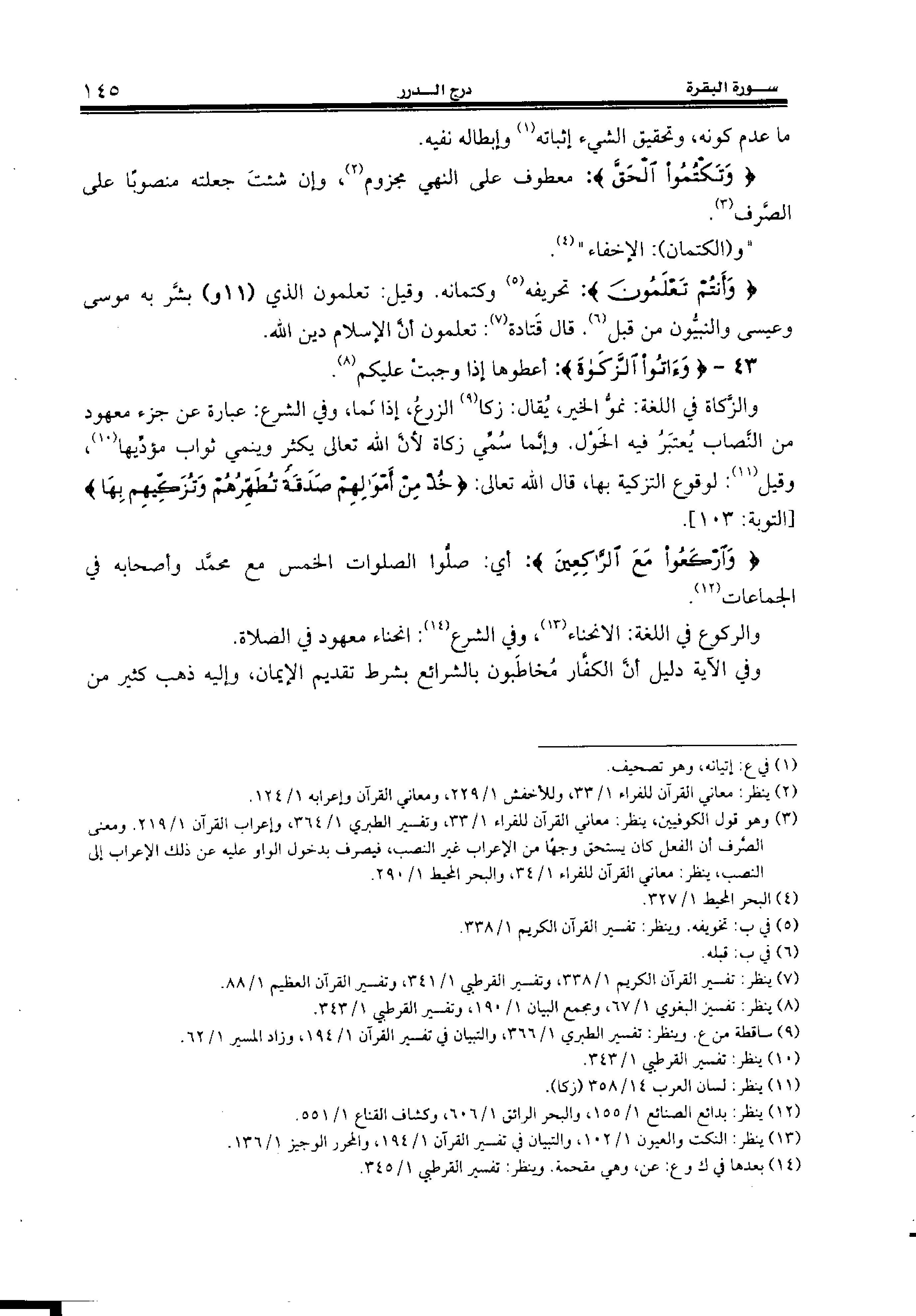 (¬13) ينظر: النكت والعيون 1/ 102، والتبيان في تفسير القرآن 1/ 194، والمحرر الوجيز 1/ 136.