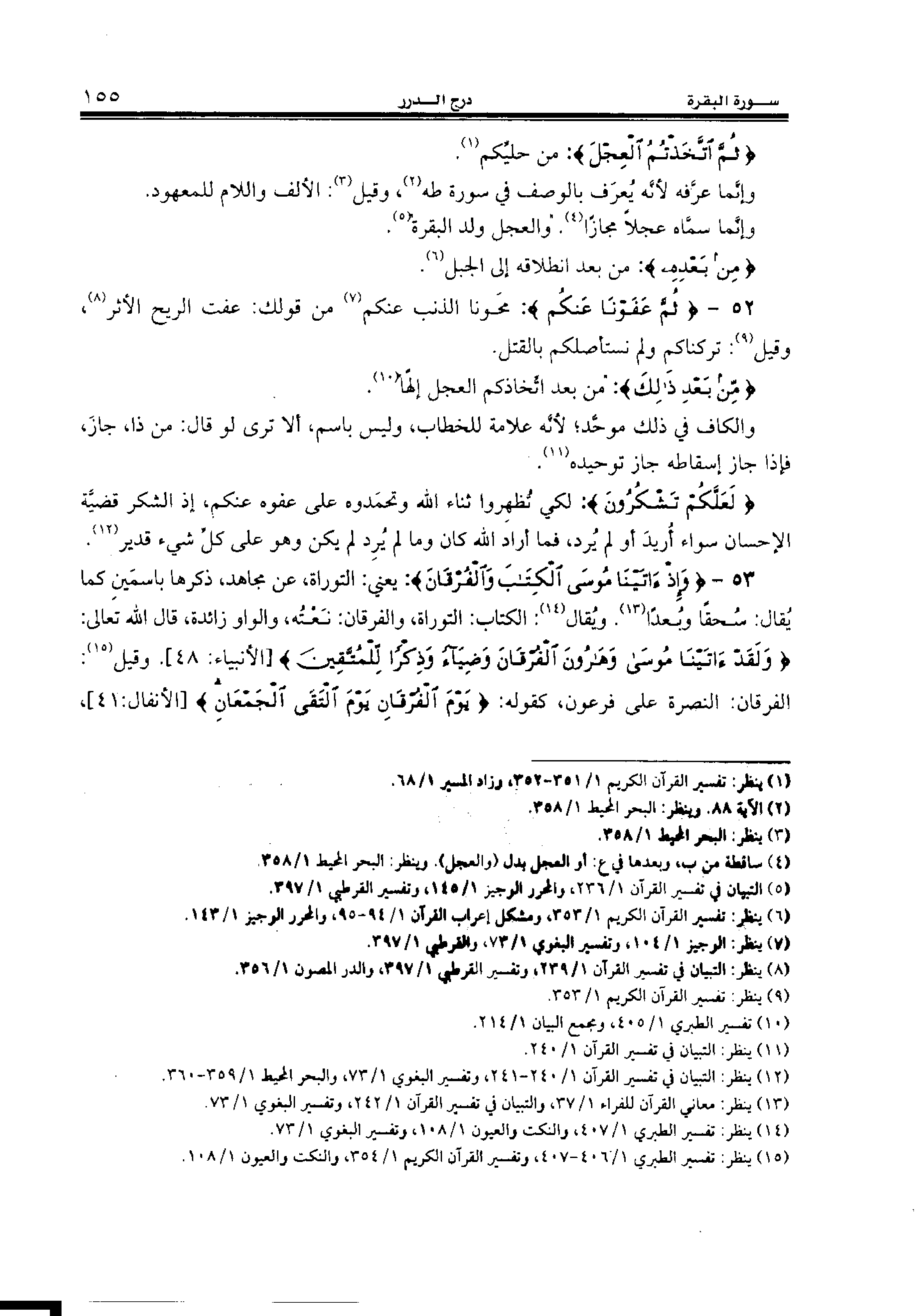 (¬5) التبيان في تفسير القرآن 1/ 236، والمحرر الوجيز 1/ 145، وتفسير القرطبي 1/ 397.