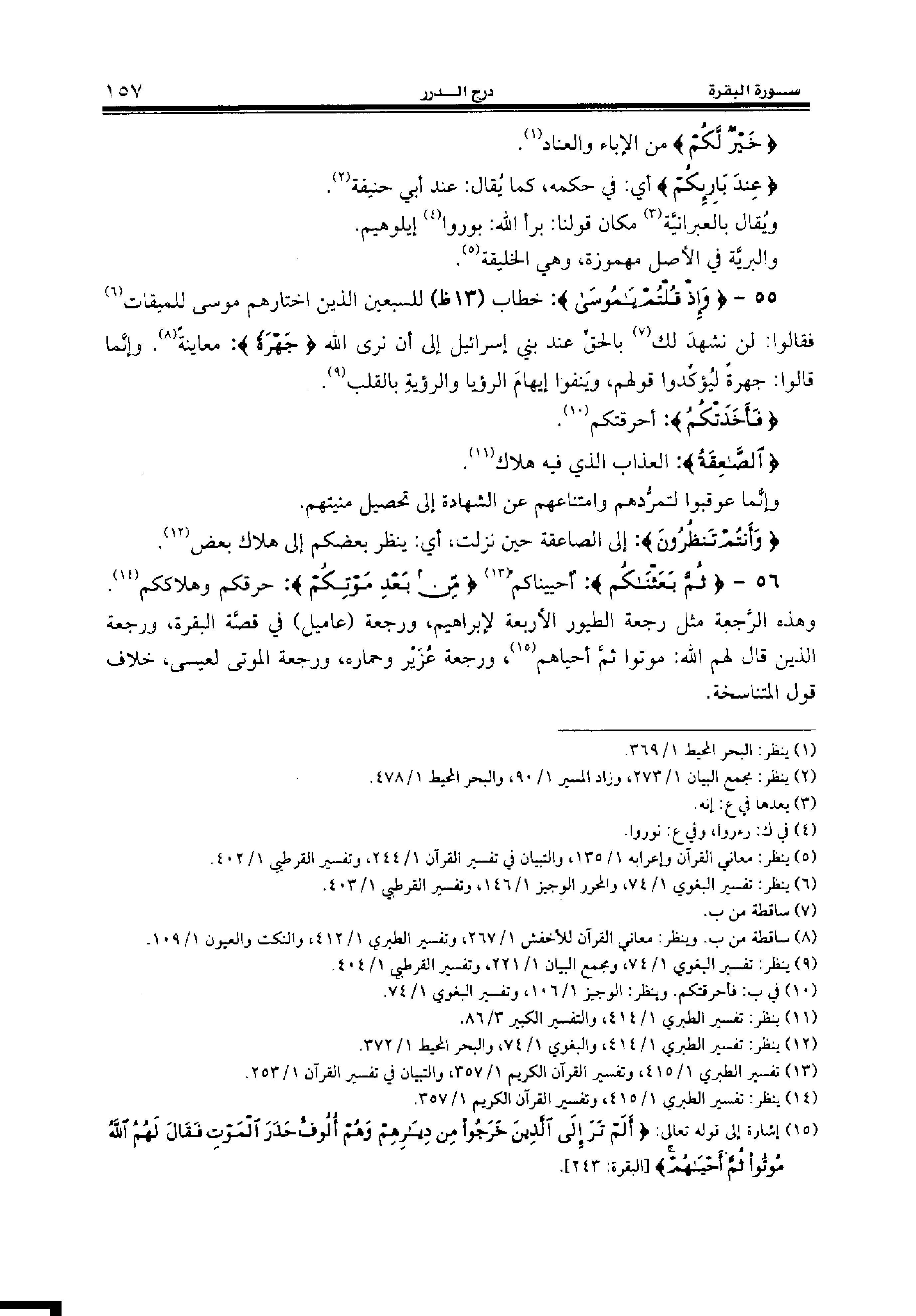 (¬13) تفسير الطبري 1/ 415، وتفسير القرآن الكريم 1/ 357، والتبيان في تفسير القرآن 1/ 253.