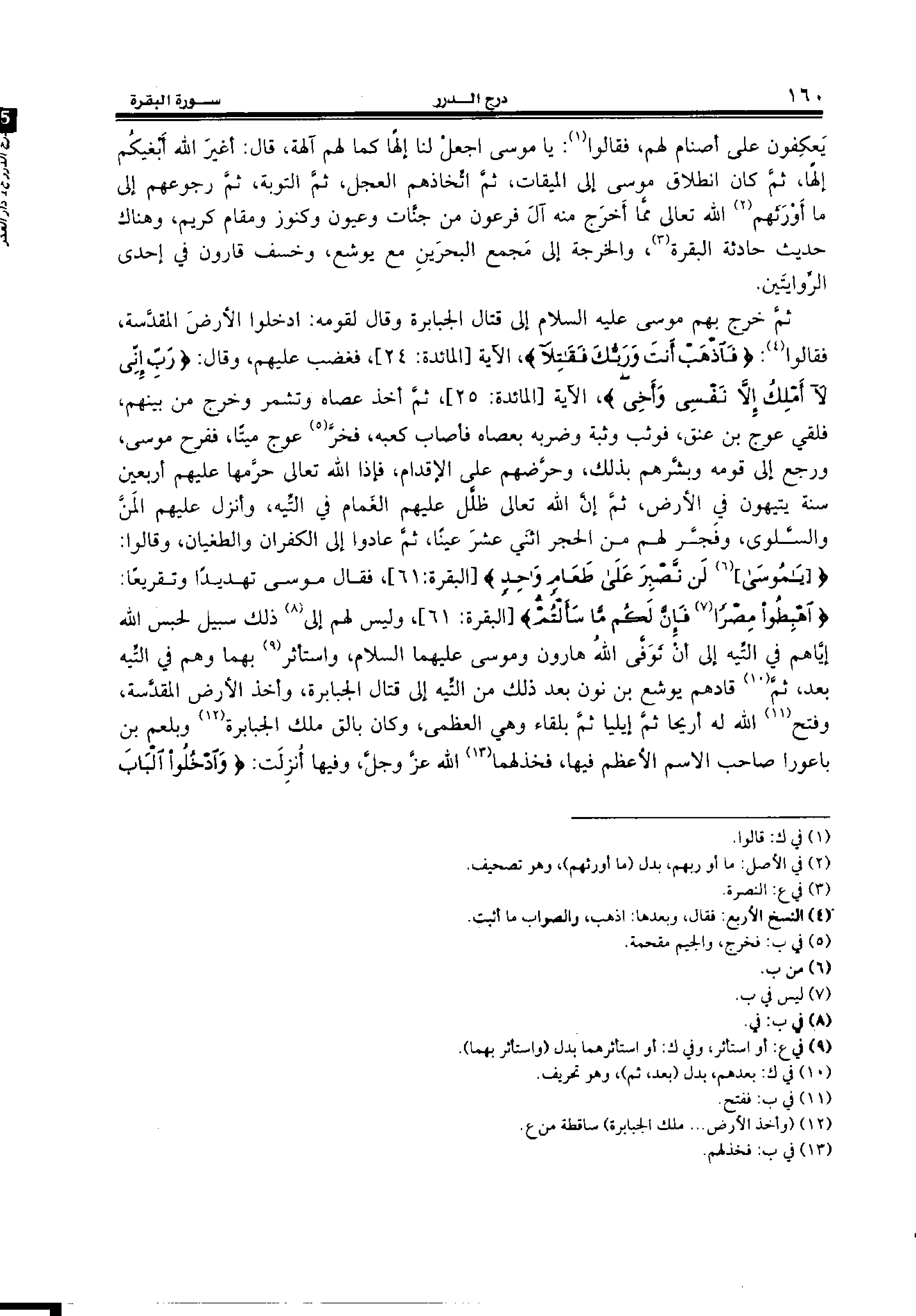 يعكفون على أصنام لهم، فقالوا (¬1): يا موسى اجعل لنا إلها كما لهم آلهة، قال: أغير الله أبغيكم إلها، ثمّ كان انطلاق موسى إلى الميقات، ثمّ اتّخاذهم العجل، ثمّ التوبة، ثمّ رجوعهم إلى ما أورثهم (¬2) الله تعالى ممّا أخرج منه آل فرعون من جنّات وعيون وكنوز ومقام كريم، وهناك حديث حادثة البقرة (¬3)، والخرجة إلى مجمع البحرين مع يوشع، وخسف قارون في إحدى الرّوايتين.