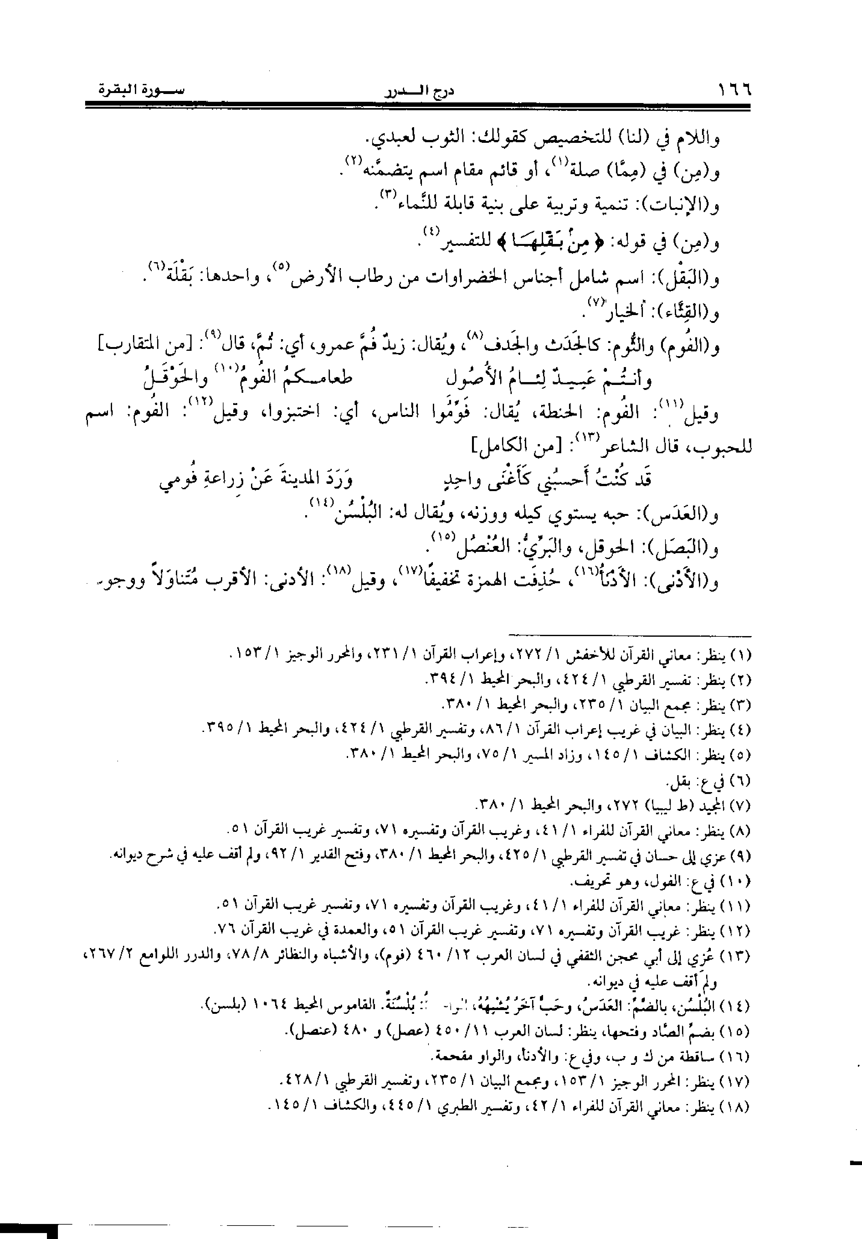 وقيل (¬11): الفوم: الحنطة، يقال: فوّموا الناس، أي: اختبزوا، وقيل (¬12): الفوم: اسم للحبوب، قال الشاعر (¬13): [من الكامل]