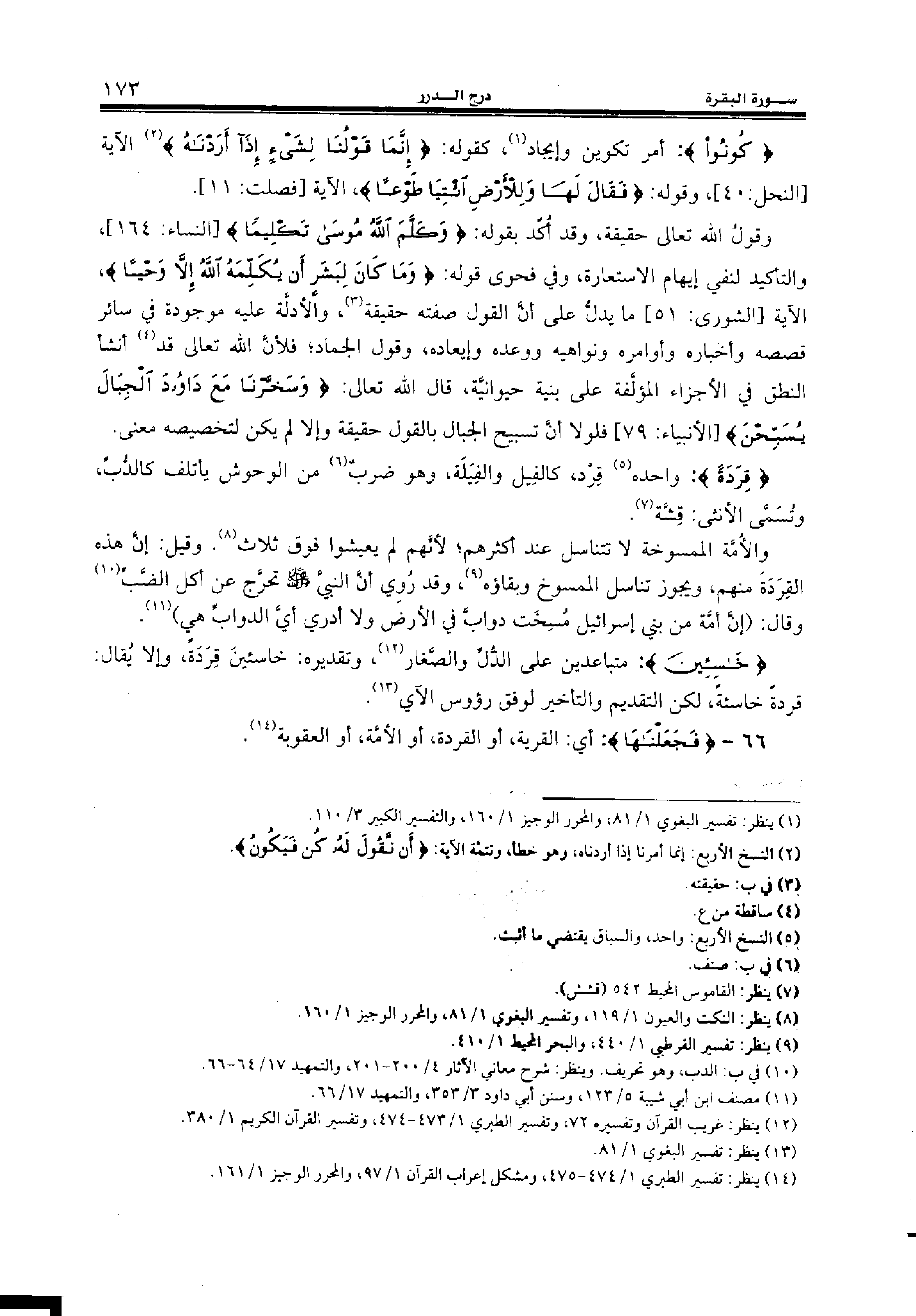 {قِرَدَةً:} واحده (¬5) قرد، كالفيل والفيلة، وهو ضرب (¬6) من الوحوش يأتلف كالدّبّ، وتسمّى الأنثى: قشّة (¬7).