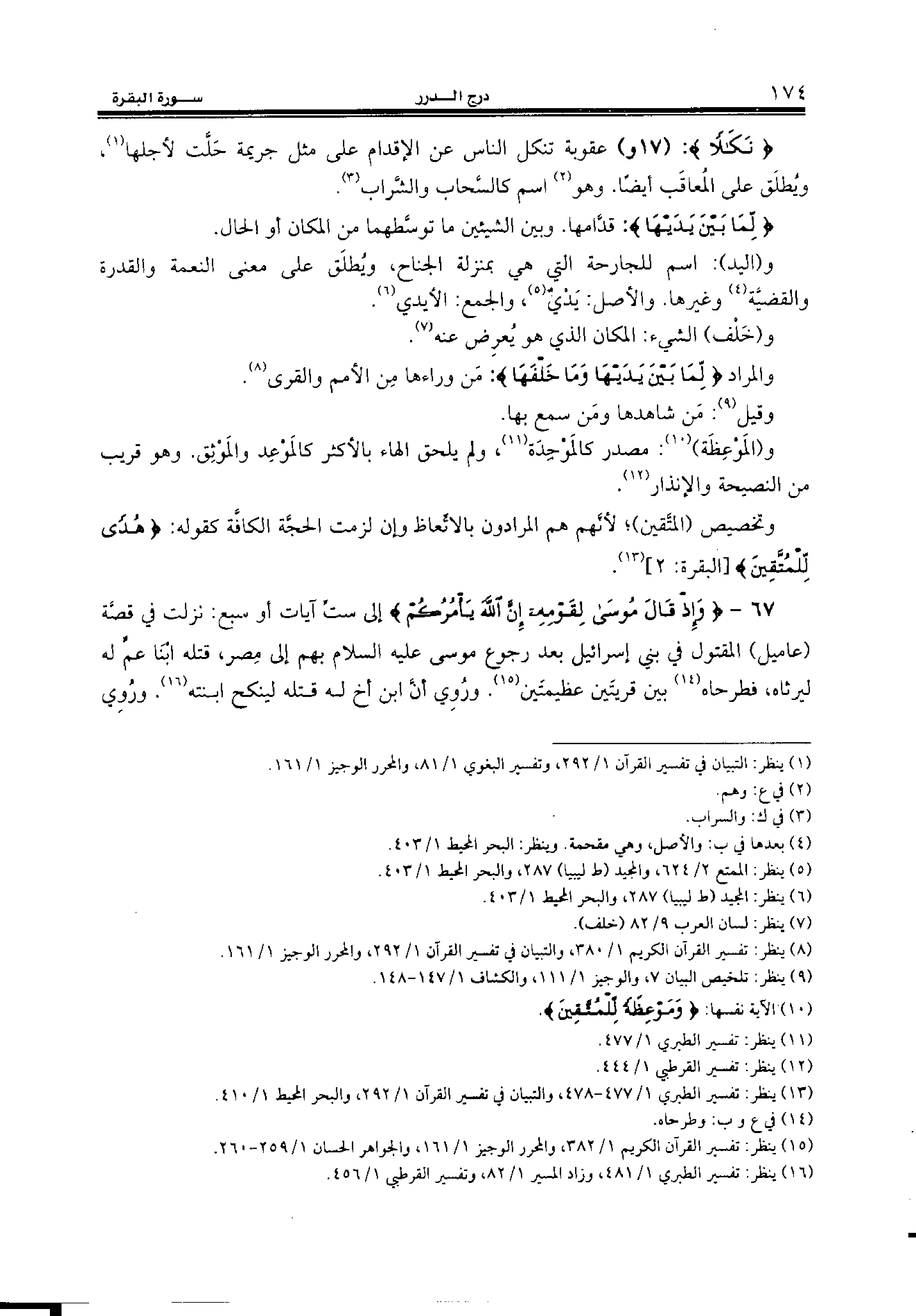 (¬16) ينظر: تفسير الطبري 1/ 481، وزاد المسير 1/ 82، وتفسير القرطبي 1/ 456.