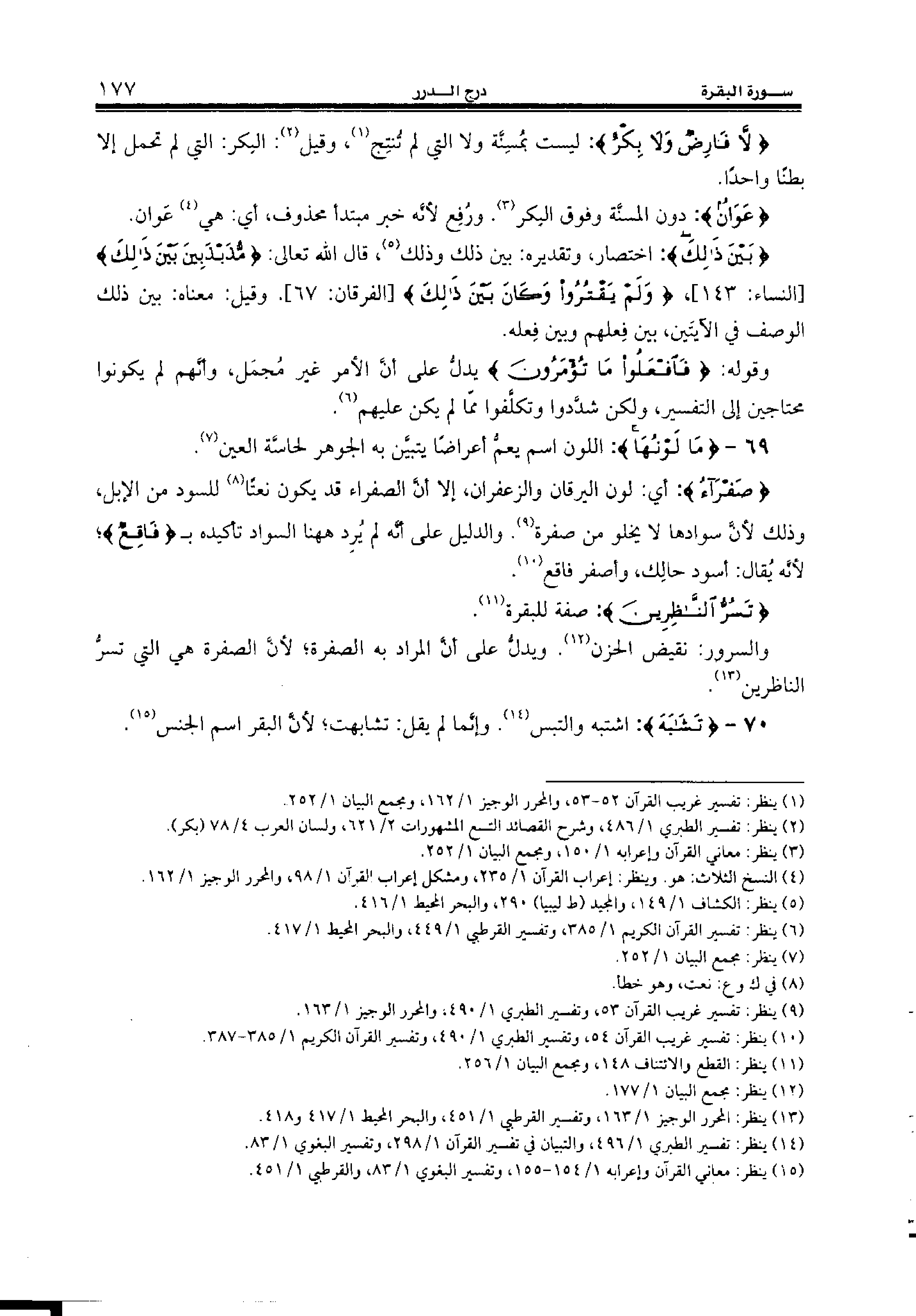 70 - {تَشابَهَ:} اشتبه والتبس (¬14). وإنّما لم يقل: تشابهت؛ لأنّ البقر اسم الجنس (¬15).