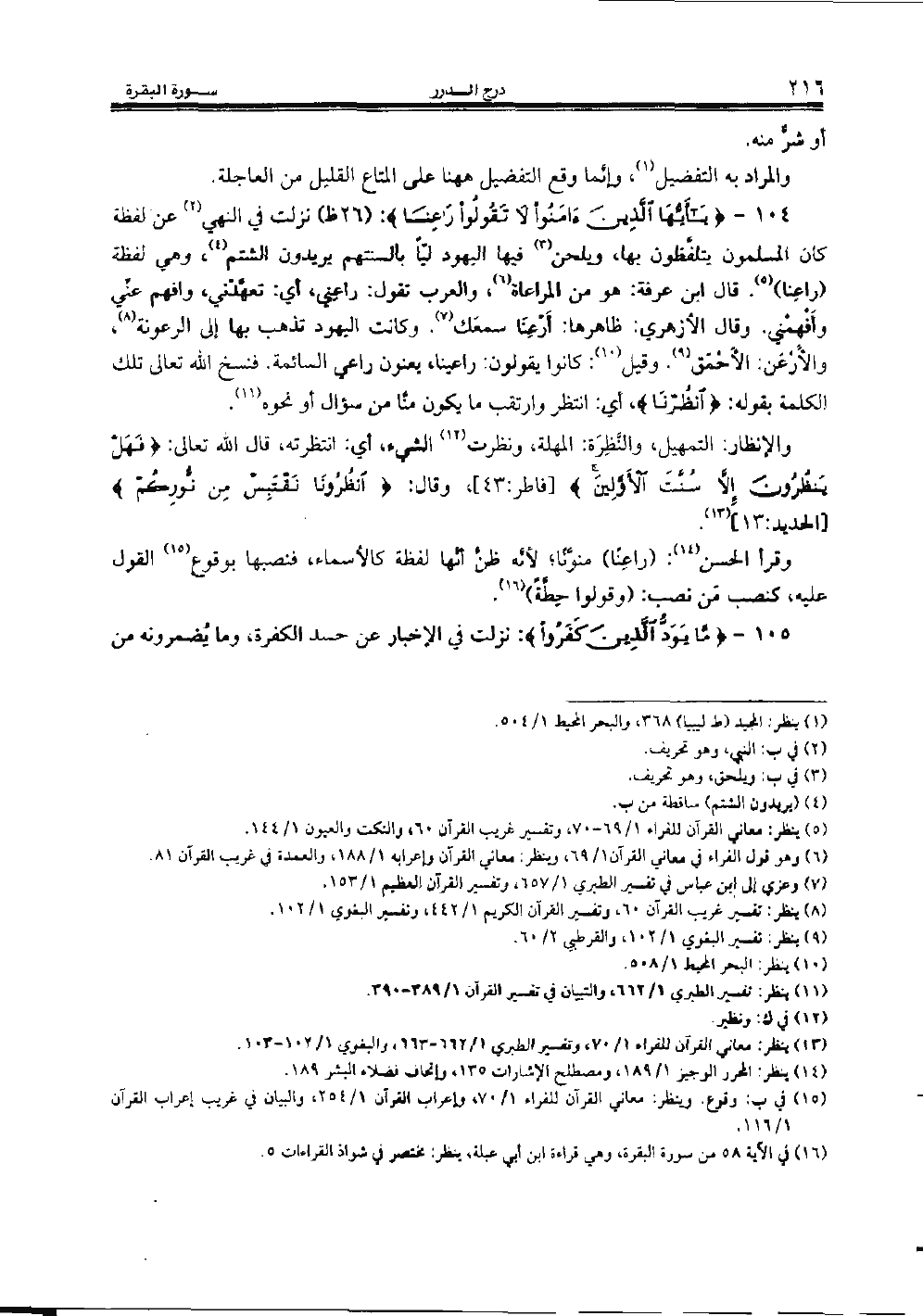 (¬14) ينظر: المحرر الوجيز 1/ 189، ومصطلح الإشارات 135، وإتحاف فضلاء البشر 189.