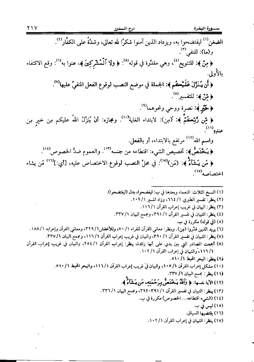 (¬8) أجمعت المصادر التي بين يدي على أنها زائدة، ينظر: إعراب القرآن 1/ 254، والبيان في غريب إعراب القرآن 1/ 116، والتبيان في إعراب القرآن 1/ 102.