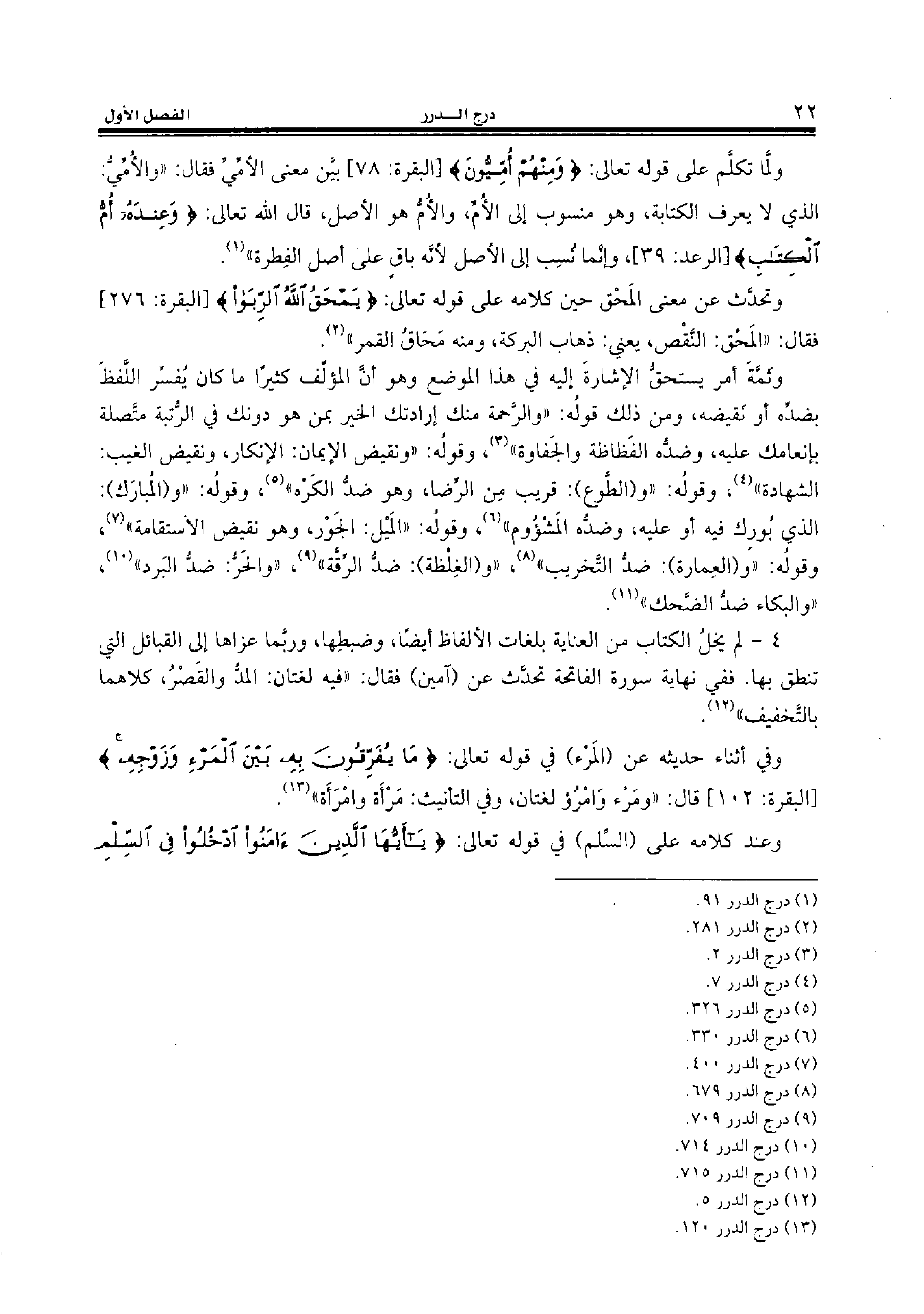 ولمّا تكلّم على قوله تعالى: {وَمِنْهُمْ أُمِّيُّونَ} [البقرة:78] بيّن معنى الأمّيّ فقال: «والأمّيّ: