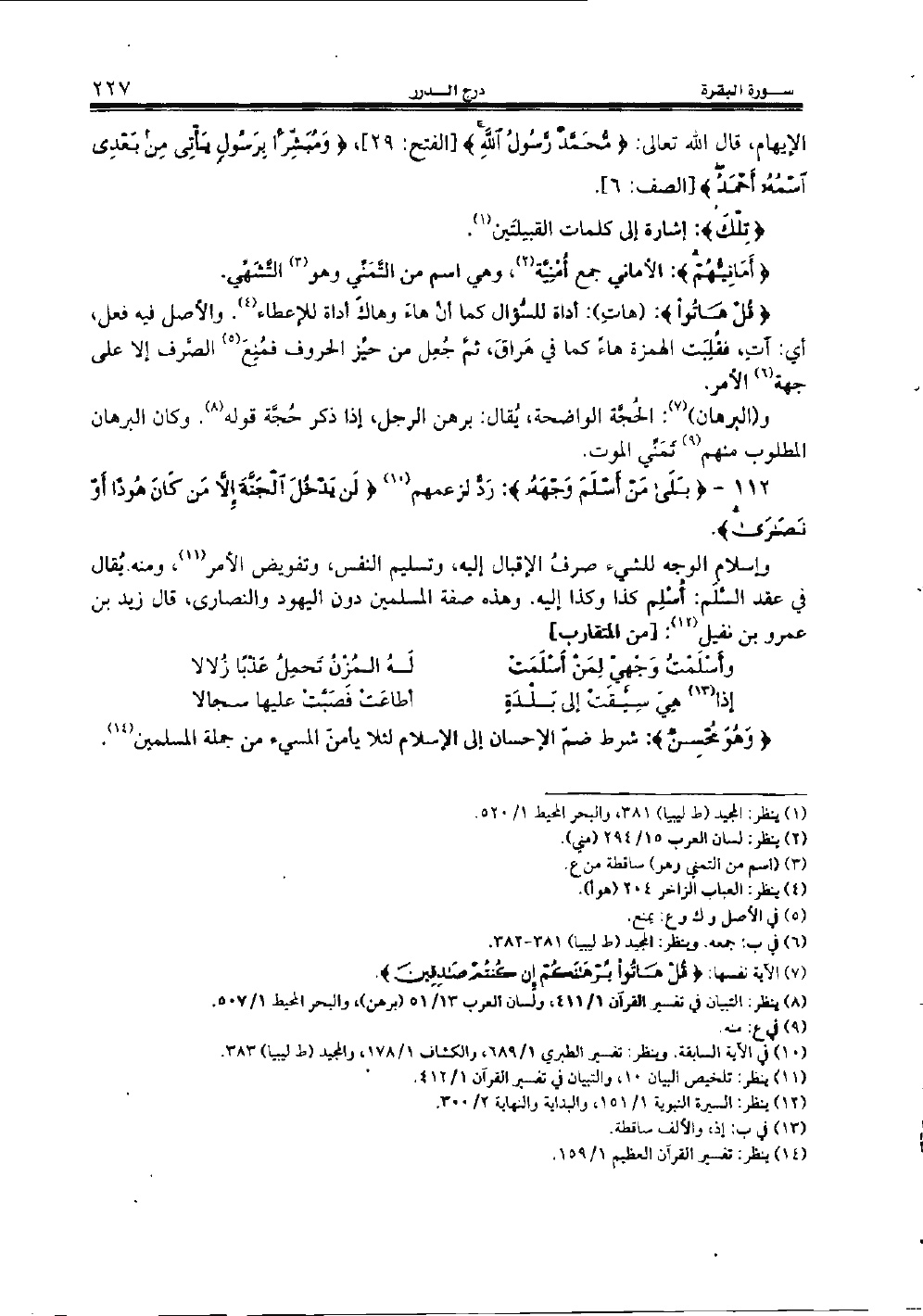 112 - {بَلى مَنْ أَسْلَمَ وَجْهَهُ:} ردّ لزعمهم (¬10) {لَنْ يَدْخُلَ الْجَنَّةَ إِلاّ مَنْ كانَ هُوداً أَوْ نَصارى.}
