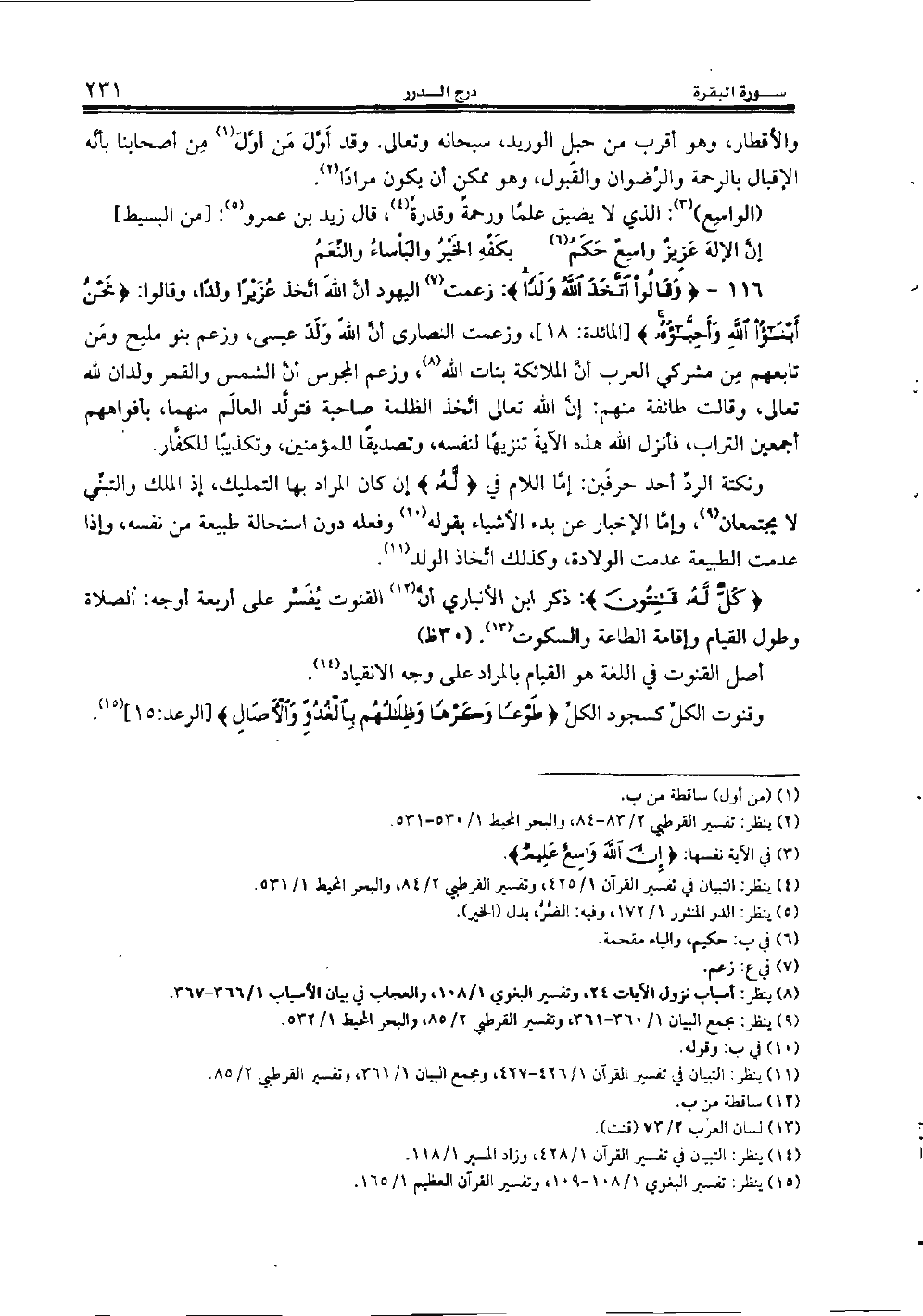 (¬2) ينظر: تفسير القرطبي 2/ 83 - 84، والبحر المحيط 1/ 530 - 531.