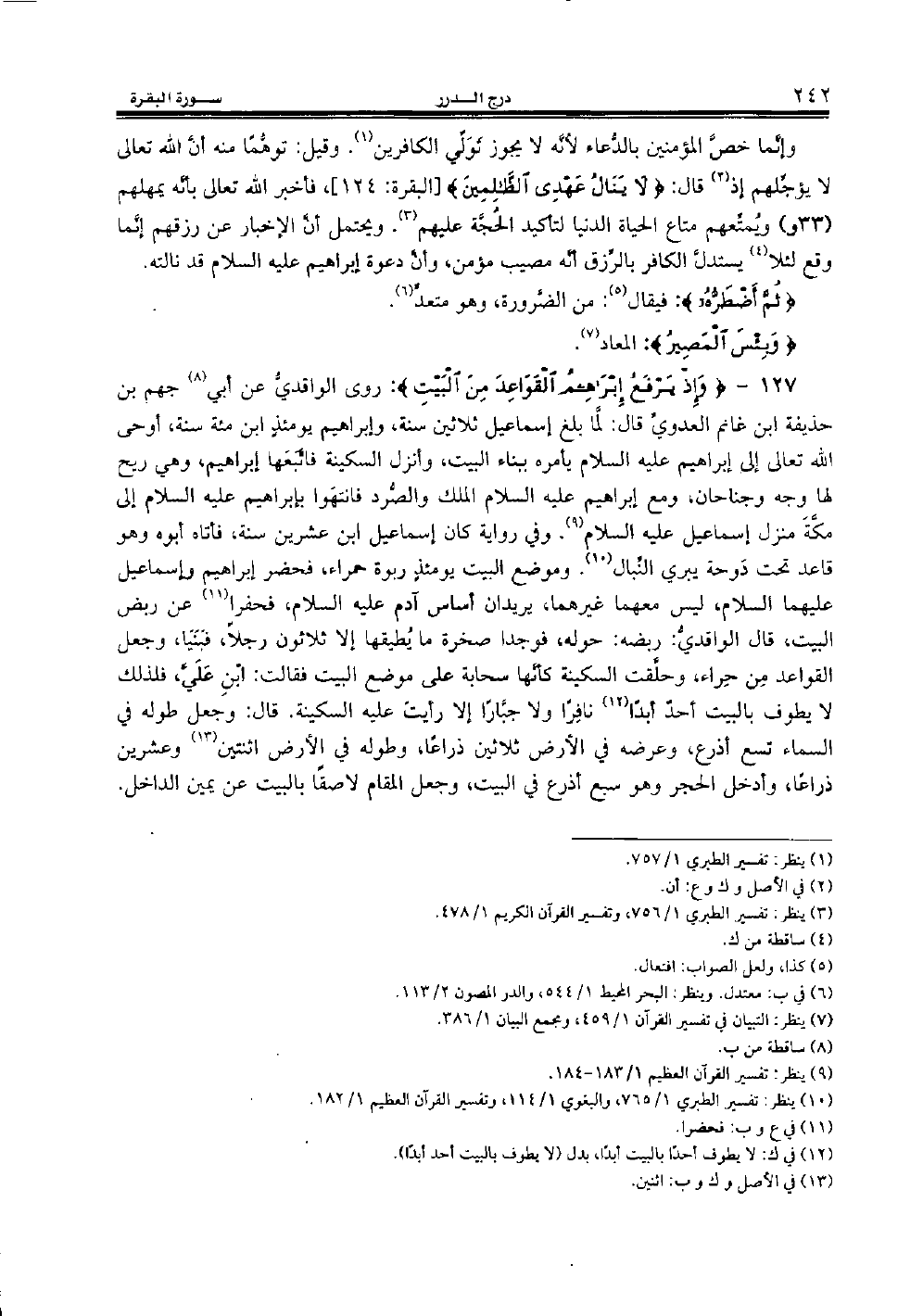 (¬10) ينظر: تفسير الطبري 1/ 765، والبغوي 1/ 114، وتفسير القرآن العظيم 1/ 182.