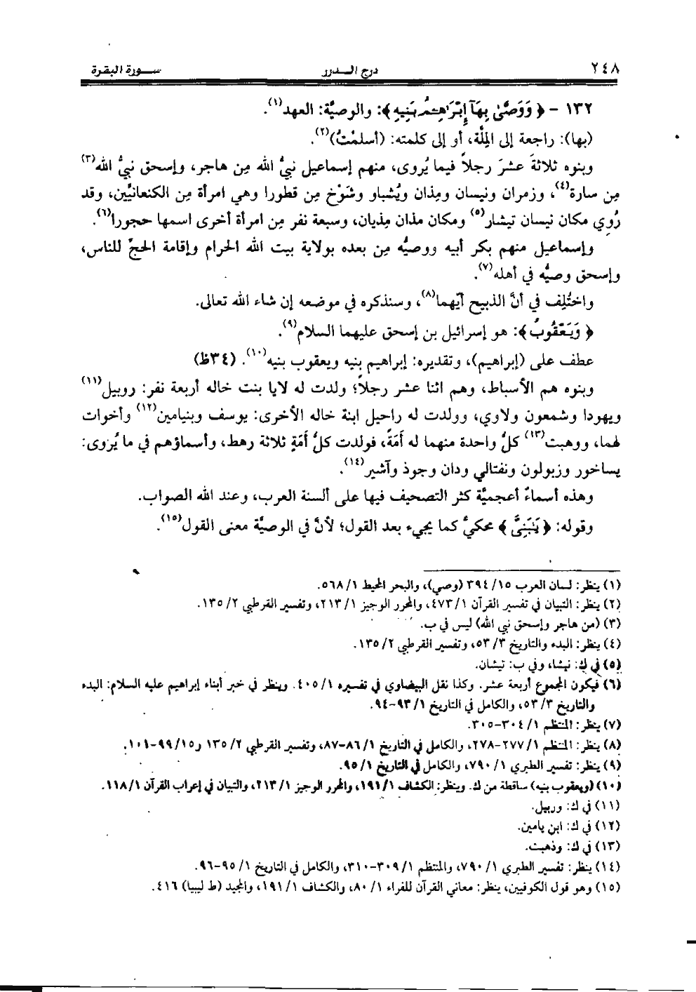 (¬10) (ويعقوب بنيه) ساقطة من ك. وينظر: الكشاف 1/ 191، والمحرر الوجيز 1/ 213، والتبيان في إعراب القرآن 1/ 118.