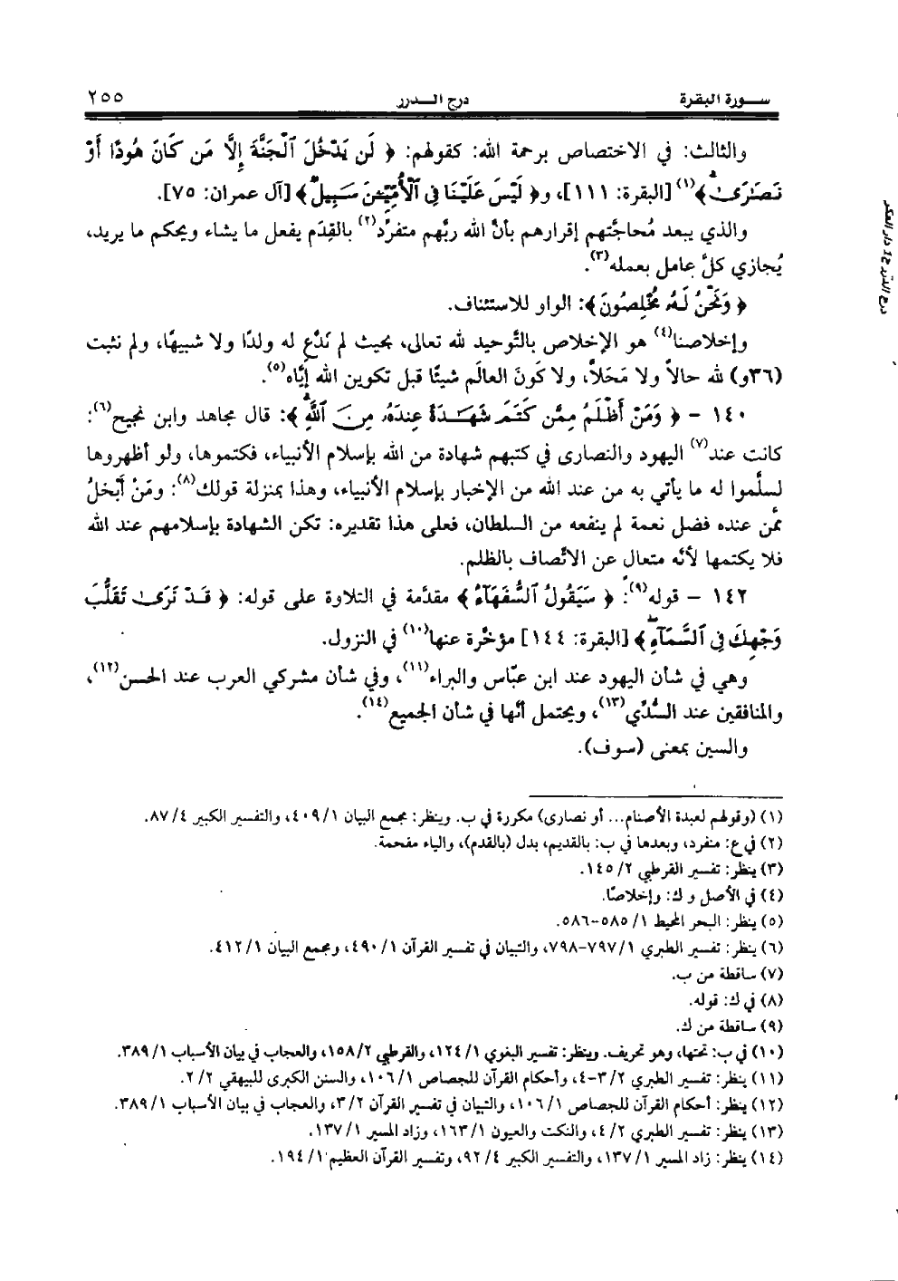(¬13) ينظر: تفسير الطبري 2/ 4، والنكت والعيون 1/ 163، وزاد المسير 1/ 137.