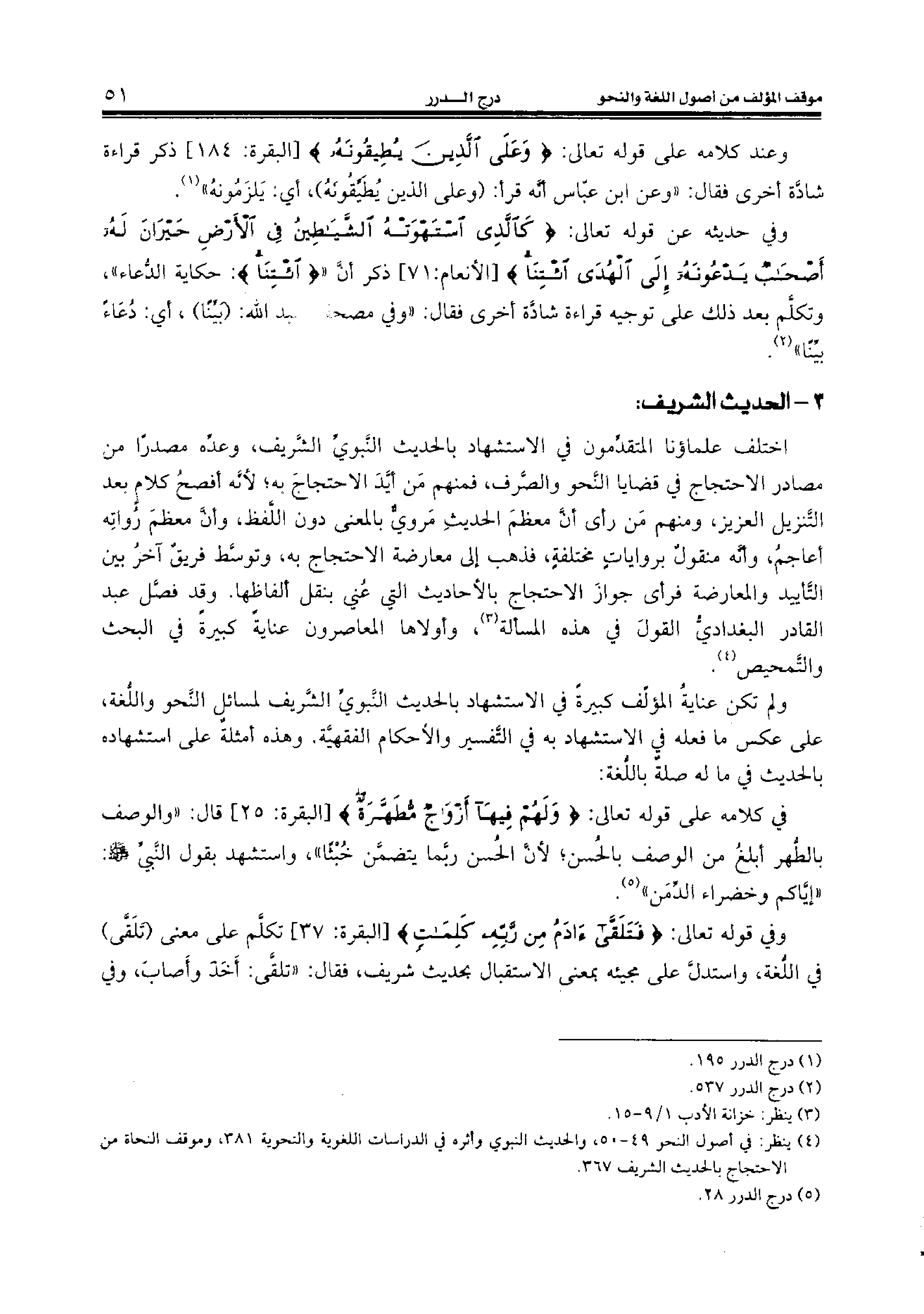 (¬4) ينظر: في أصول النحو 49 - 50، والحديث النبوي وأثره في الدراسات اللغوية والنحوية 381، وموقف النحاة من الاحتجاج بالحديث الشريف 367.