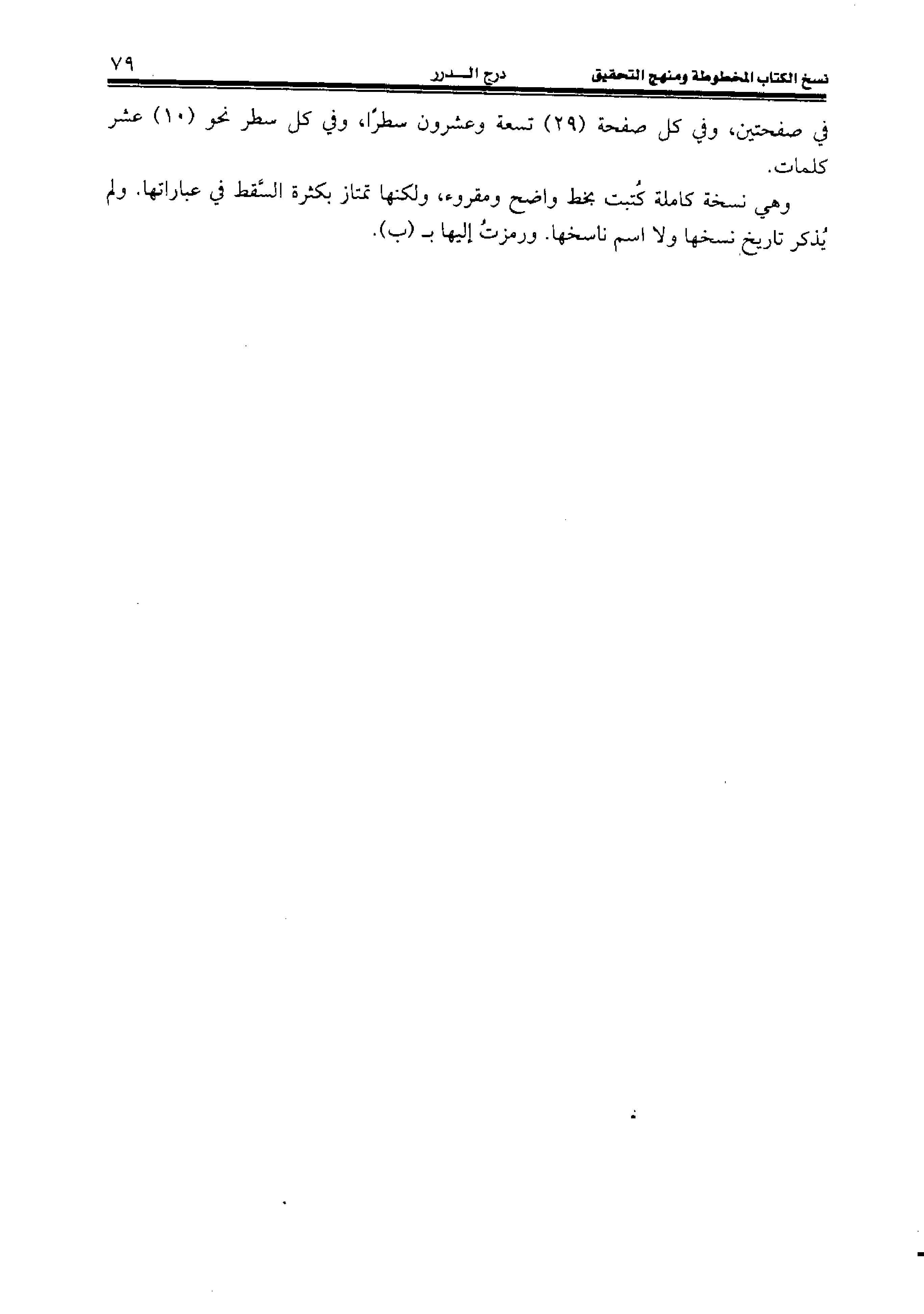 وهي نسخة كاملة كتبت بخط واضح ومقروء، ولكنها تمتاز بكثرة السّقط في عباراتها. ولم يذكر تاريخ نسخها ولا اسم ناسخها. ورمزت إليها ب (ب).