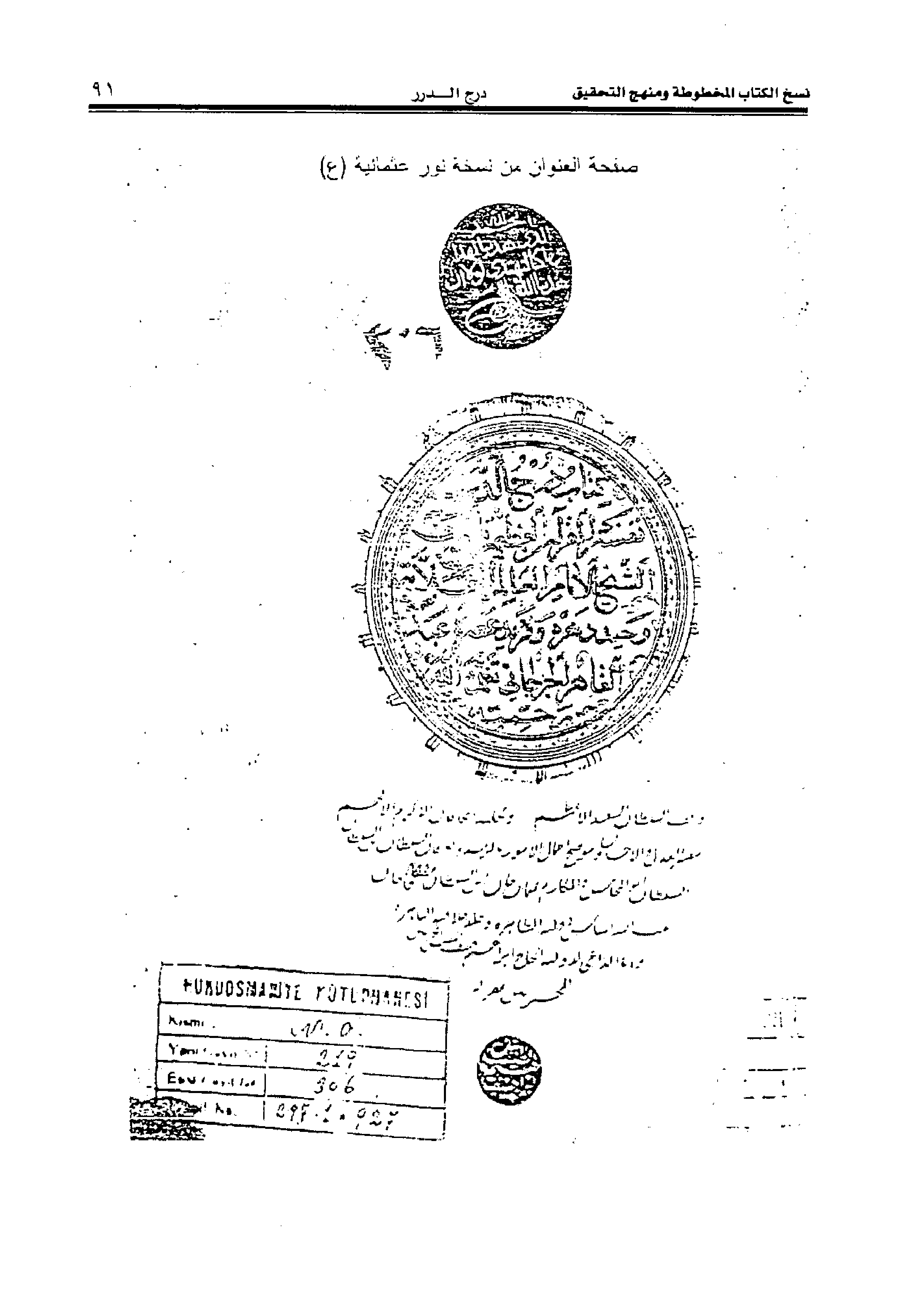 صفحة العنوان من نسخة نور عثمانية (ع)