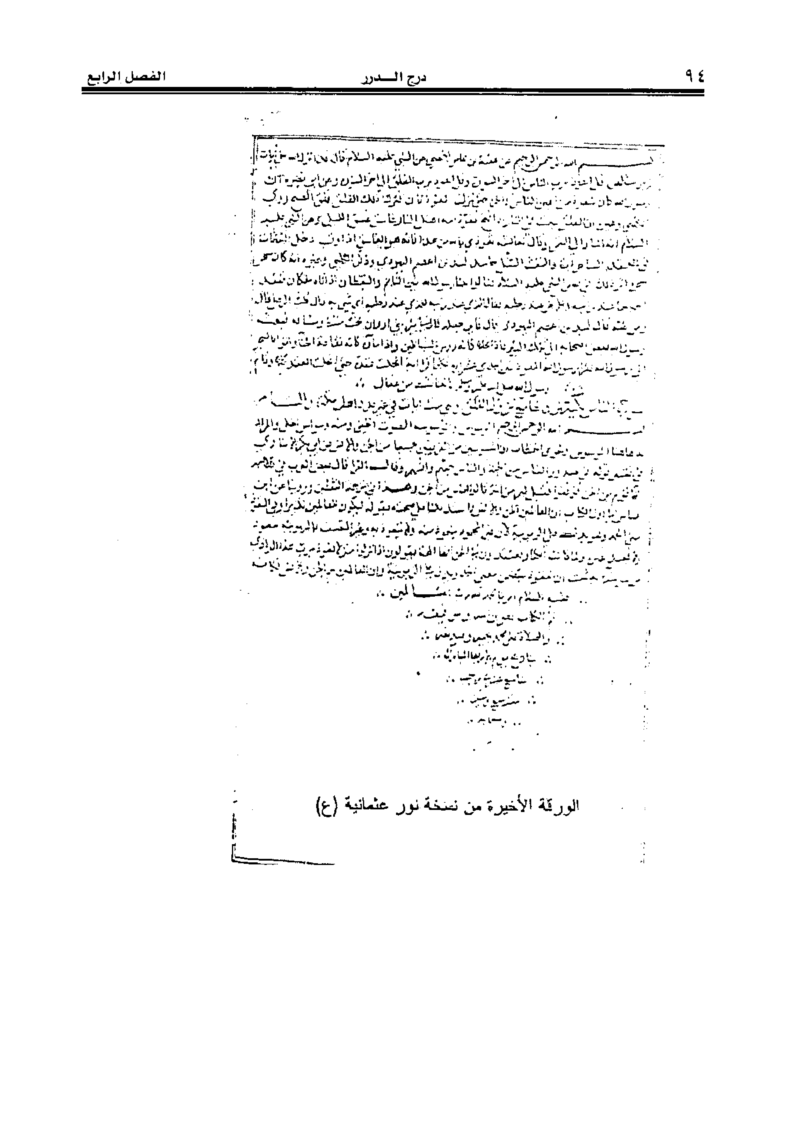 الورقة الأخيرة من نسخة نور عثمانية (ع)