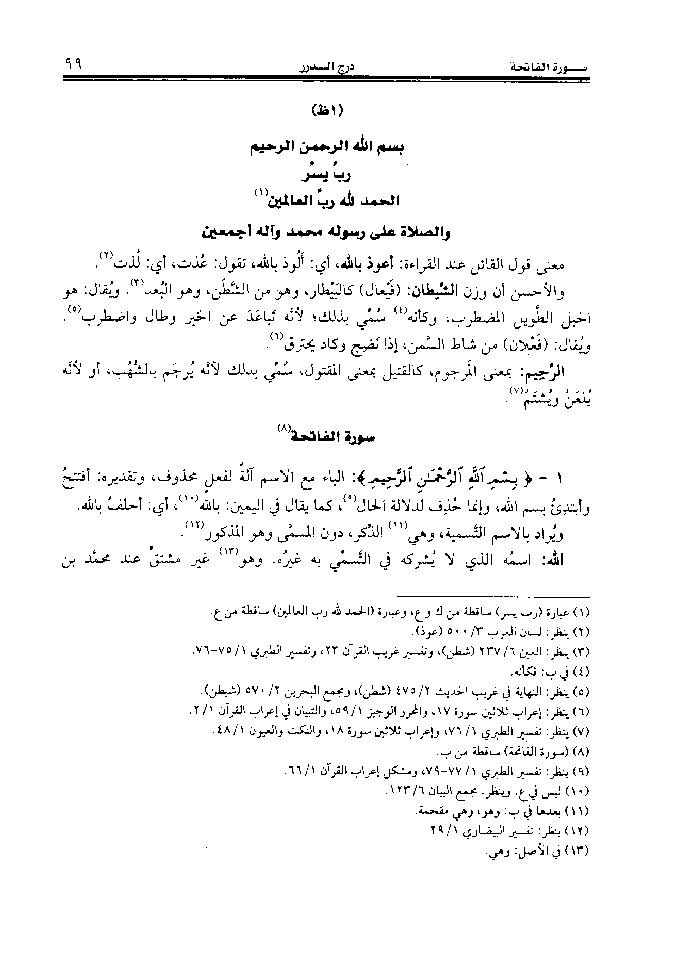 (1 ظ) بسم الله الرحمن الرحيم ربّ يسّر الحمد لله ربّ العالمين (¬1) والصلاة على رسوله محمد وآله أجمعين